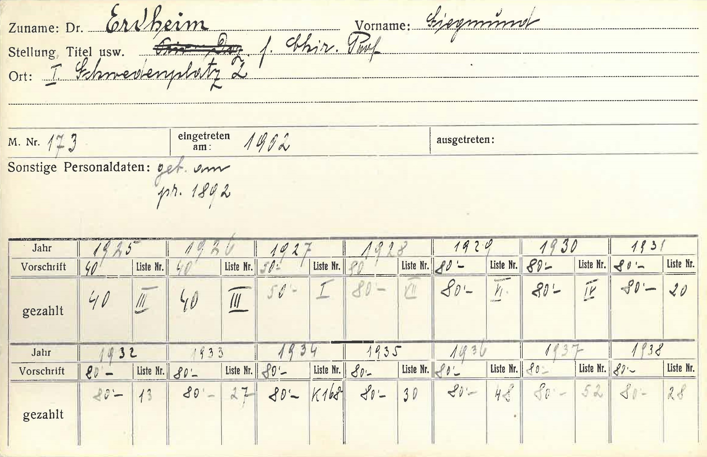 Siegmund Erdheim blieb während der gesamten NS-Zeit in Wien. Seine