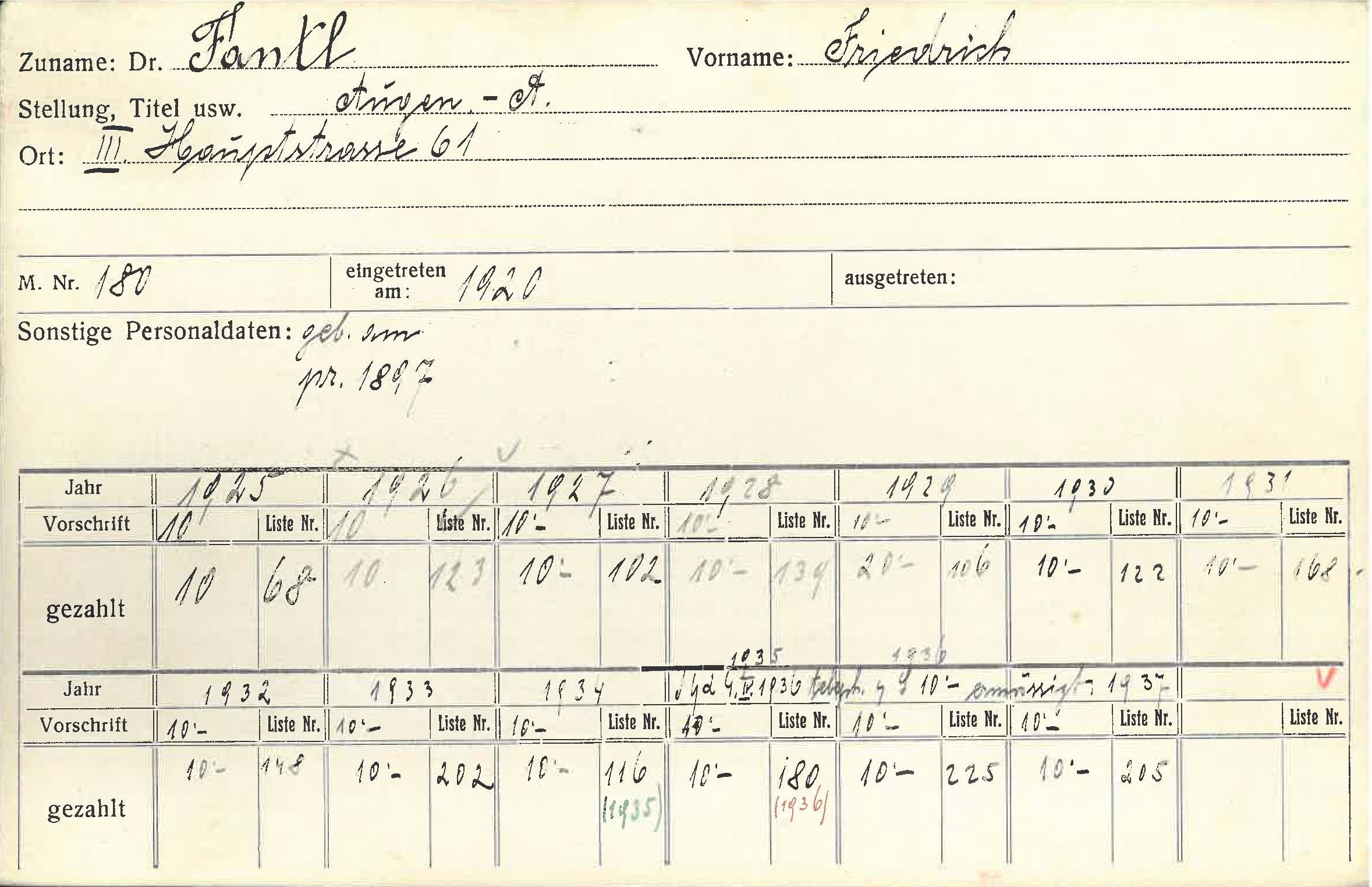 Adresse (von Karteikarte) Hauptstraße 61, 1140 Wien