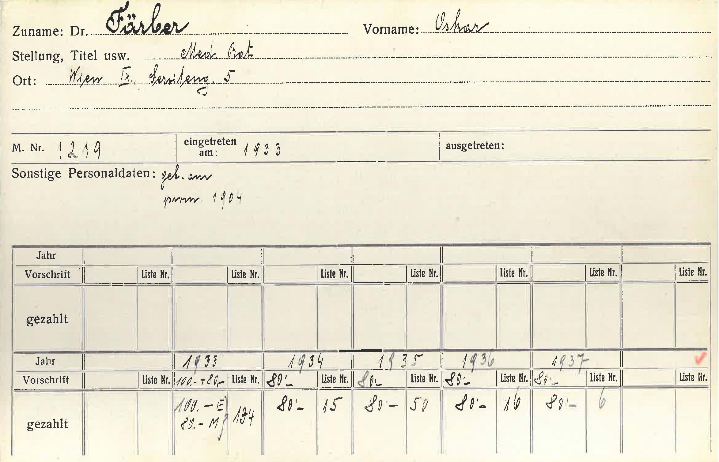 Oskar Färber wurde im Holocaust ermordet; er stirbt am 15.06.1942 in Maly Trostinec. Färber hielt laut Isidor Fischer keine Vorträge in der Gesellschaft der Ärzte in Wien.