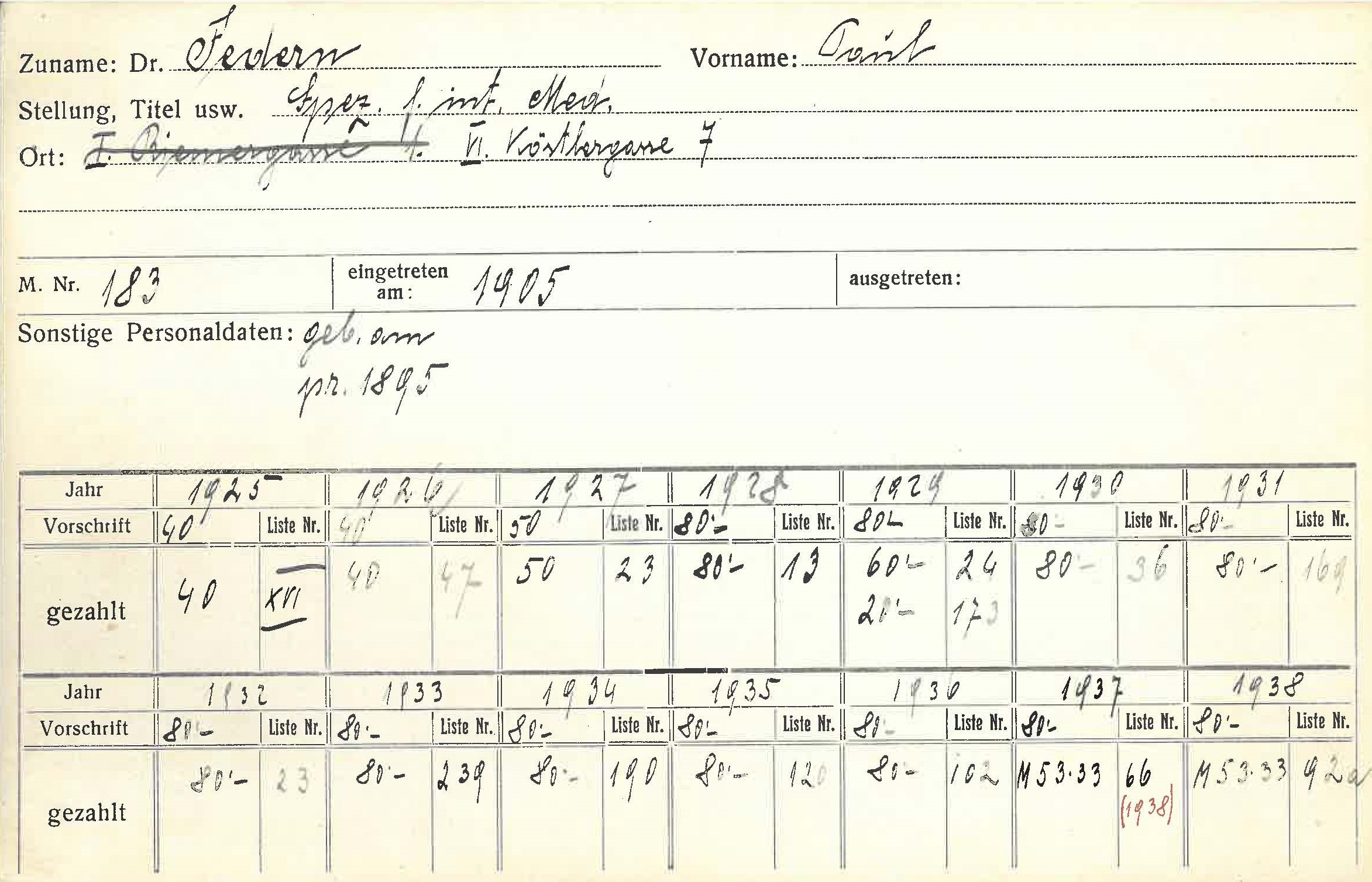 Federn hielt nach Isidor Fischer keine Vorträge in der Gesellschaft der Ärzte in Wien.