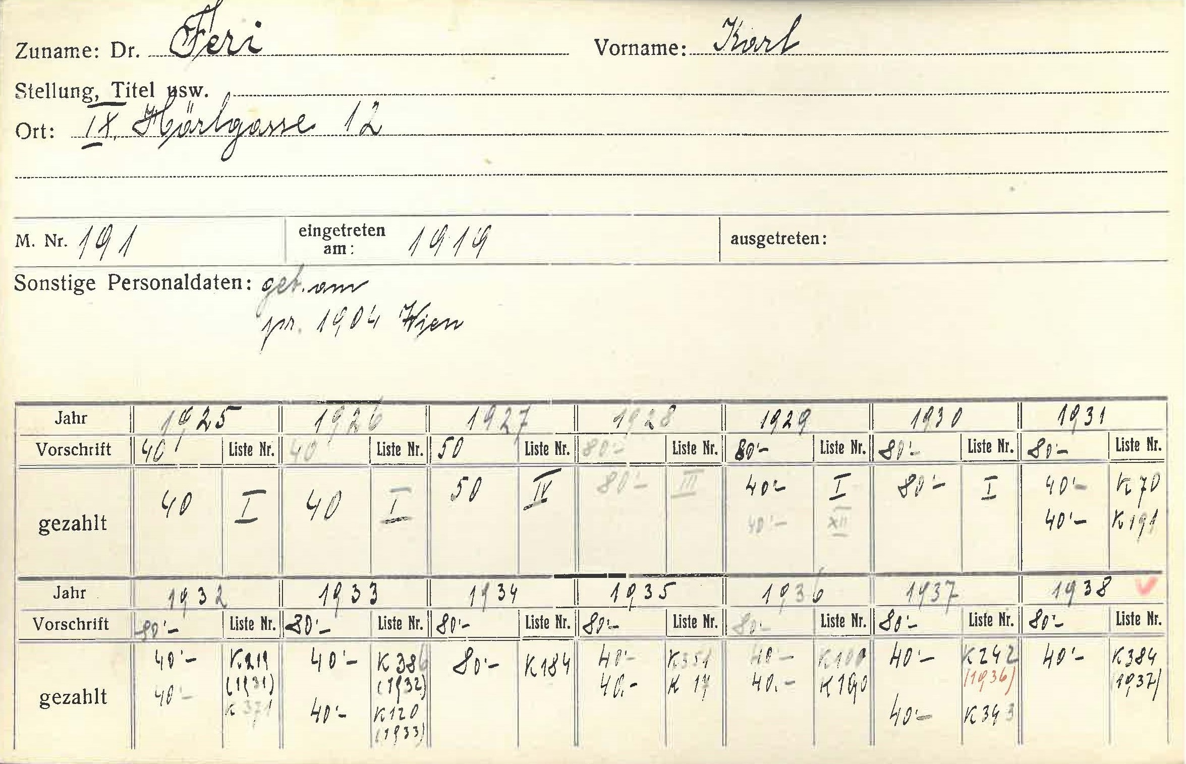 Karl Feri (1879-1939) hielt laut Isidor Fischer keine Vorträge in der Gesellschaft der Ärzte in Wien.