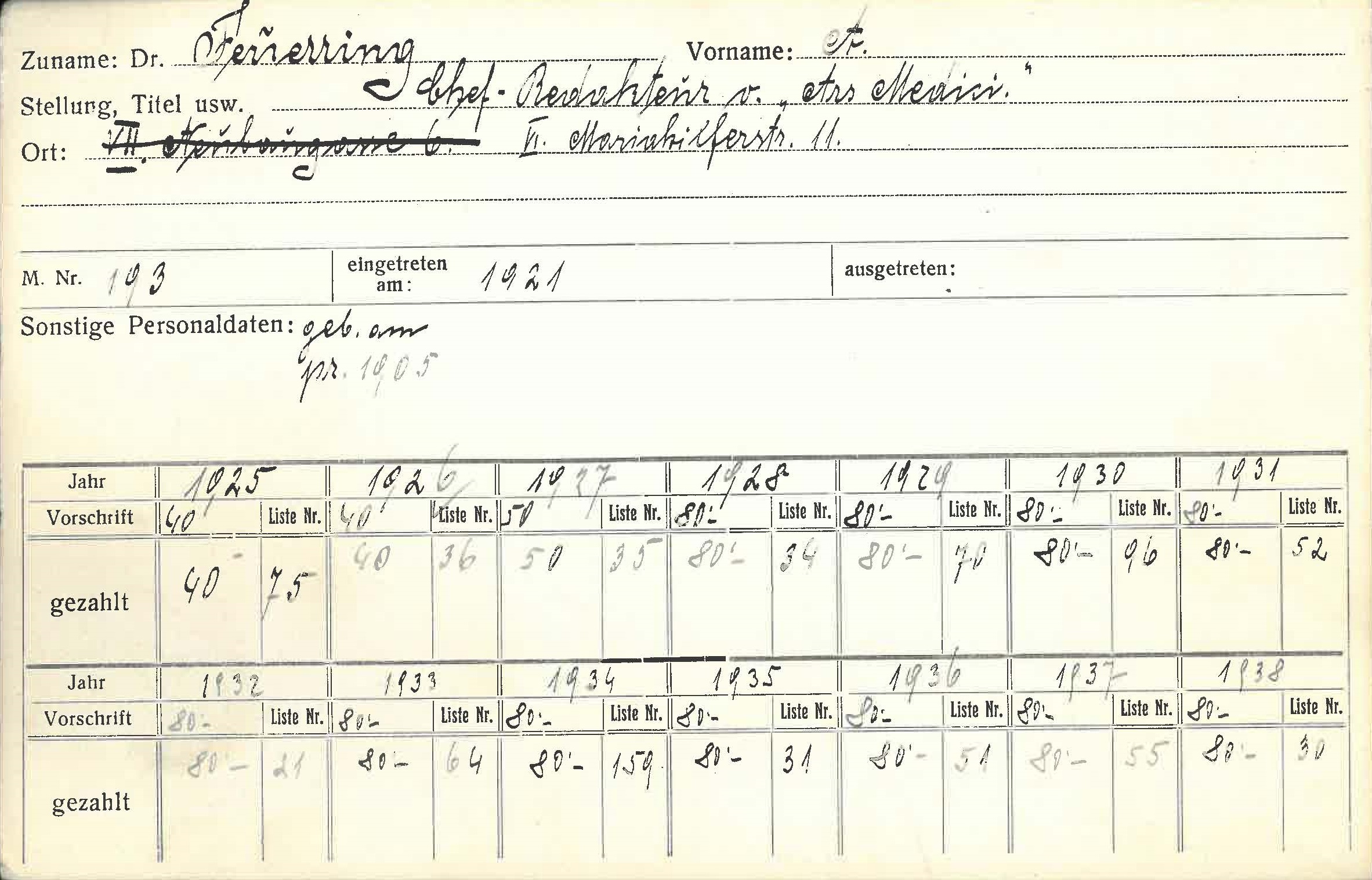 Alfred (Abraham) Feuerring (1880–1963). Isidor Fischer listet keine Vorträge von Feuerring. Text: Josef Hlade