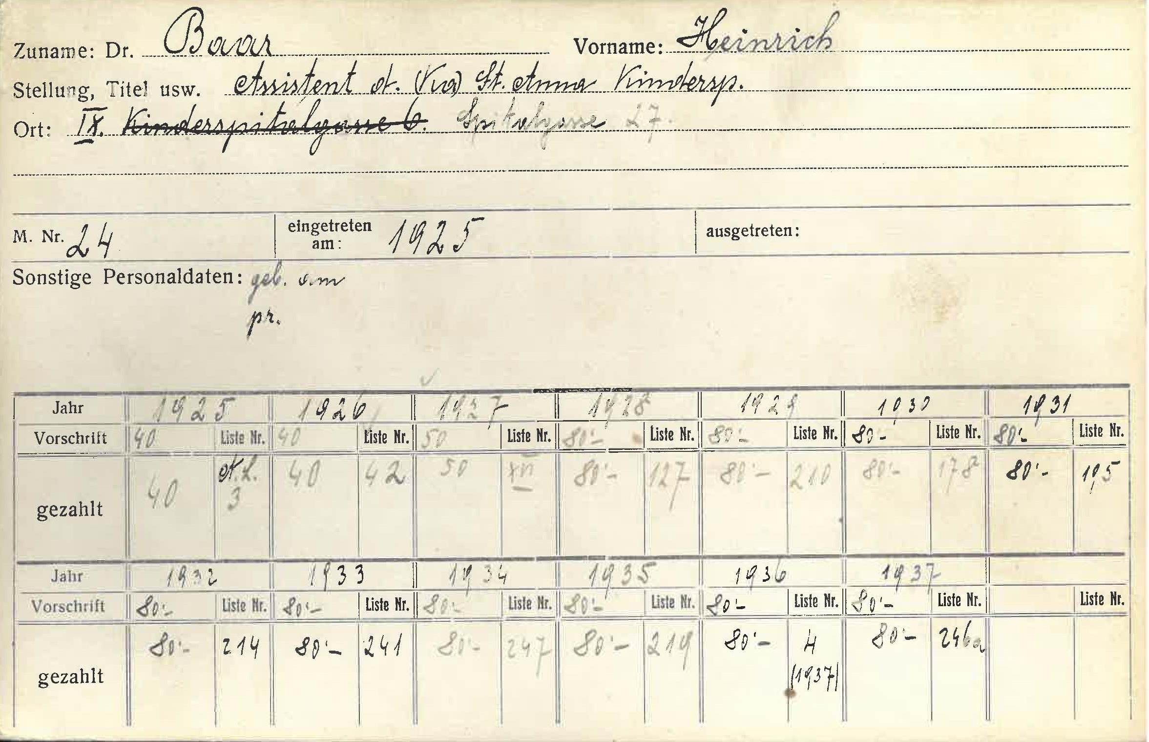 Heinrich Baar hielt folgende Vorträge in der Gesellschaft der Ärzte in Wien: Über progressive postinfektiöse Erythrophthise (7. 1. 1927), (mit H. Benedict und J. Stroß) Über Masernschutz (28. 11. 1930). Text: Josef Hlade
