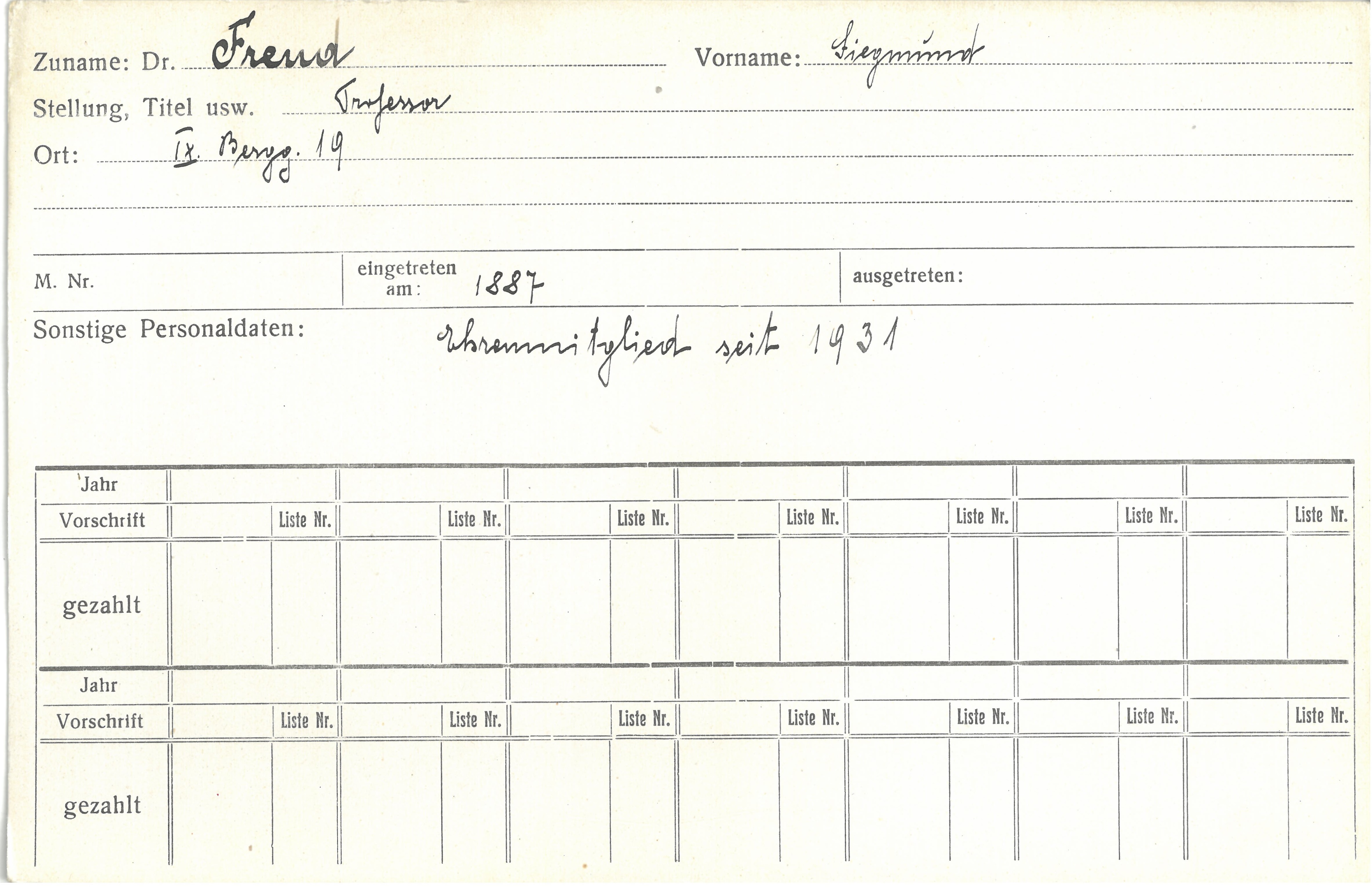 Freud wurde 1887 als Mitglied der Gesellschaft der Ärzte in Wien aufgenommen. Seit 1931 war er schließlich Ehrenmitglied. Seiner Aufnahme war sein vor der Gesellschaft der Ärzte am 15. Oktober 1886 gehaltener, berühmt gewordener Vortrag „Über männliche Hysterie“ vorausgegangen. Der Inhalt des Vortrags löste einen heftigen Streit in der Sitzung aus. Freuds Lehrer Theodor Meynert (1833–1892), Hirnanatom, Professor für Psychiatrie und Vizepräsident der Gesellschaft der Ärzte, übte besonders scharfe Kritik.