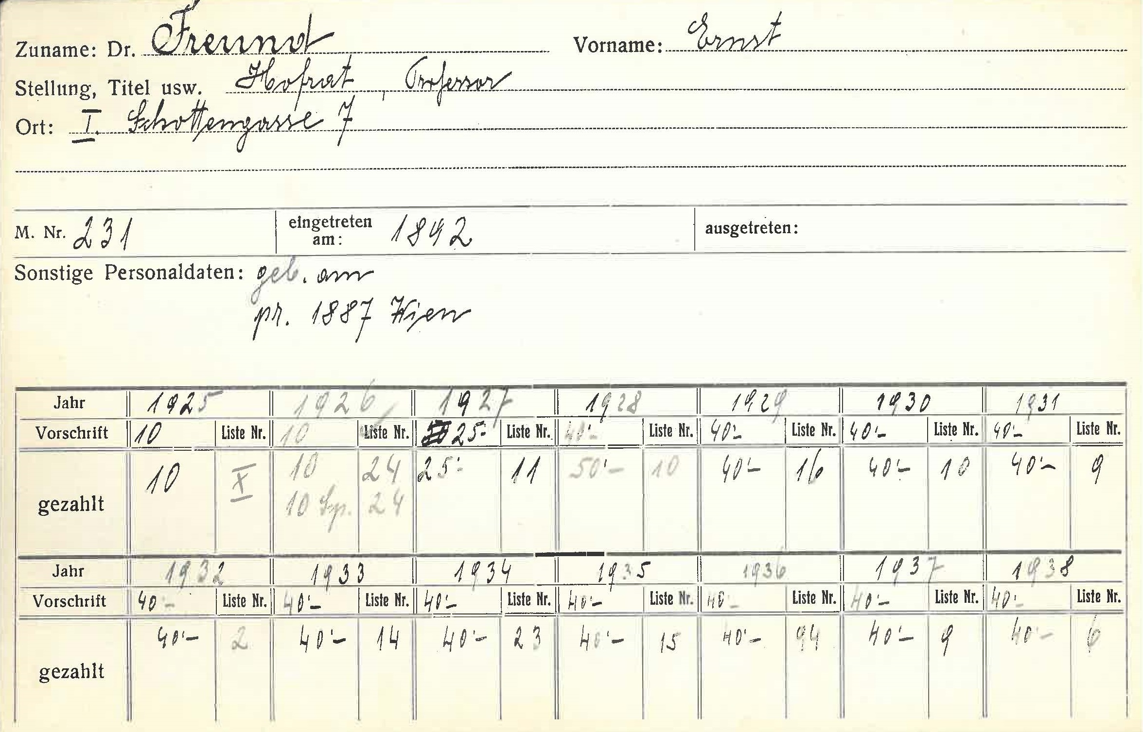 seiner 1933 erfolgten Pensionierung setzte Ernst Freund seine Lehrtätigkeit und seine Forschungen an der I. medizinischen Universitätsklinik fort.