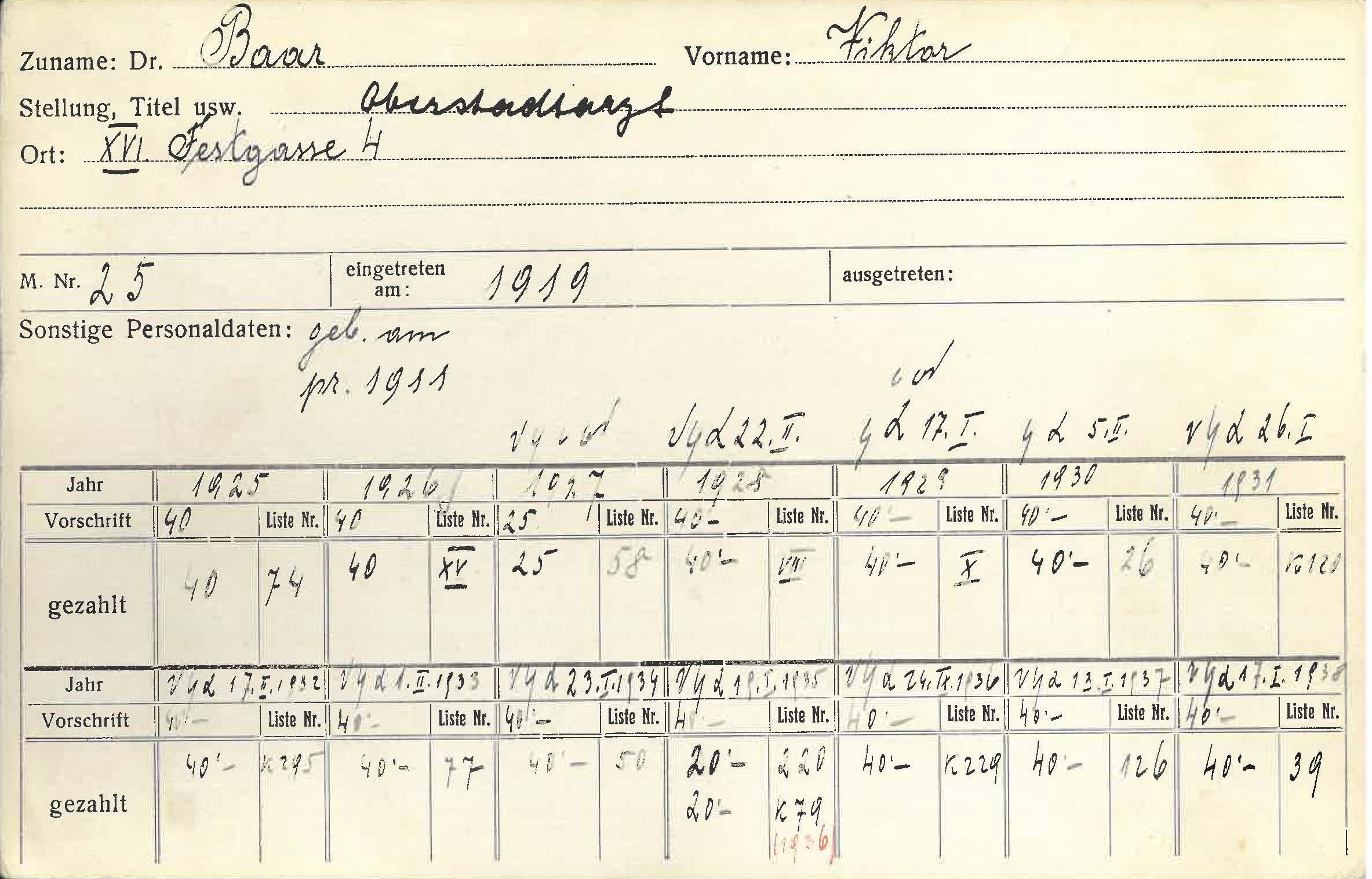 Viktor Baar hielt folgende Vorträge in der Gesellschaft der Ärzte in Wien:
