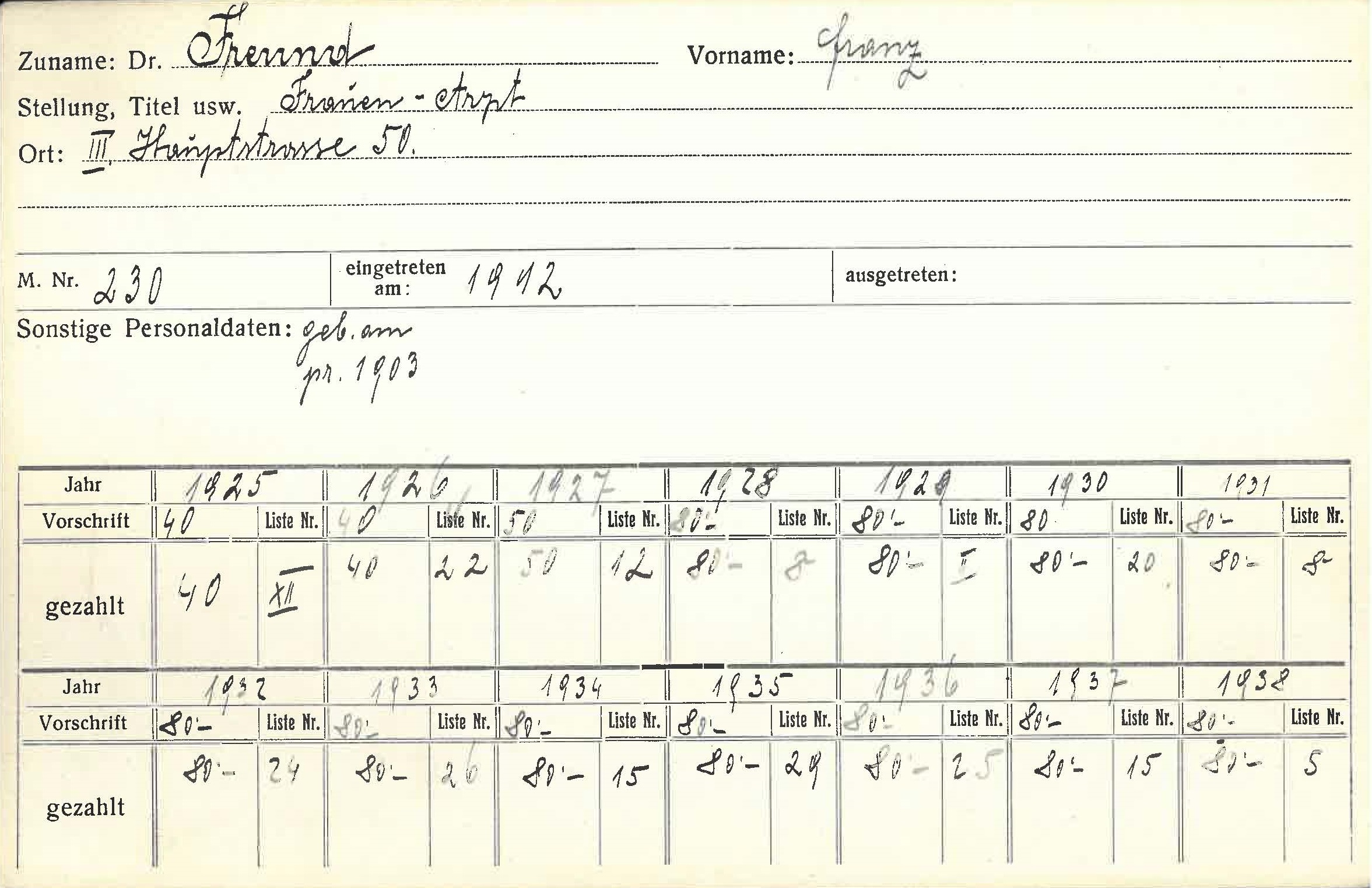 Franz Freund hielt Isidor Fischer zufolge keine Vorträge in der Gesellschaft der Ärzte in Wien.
