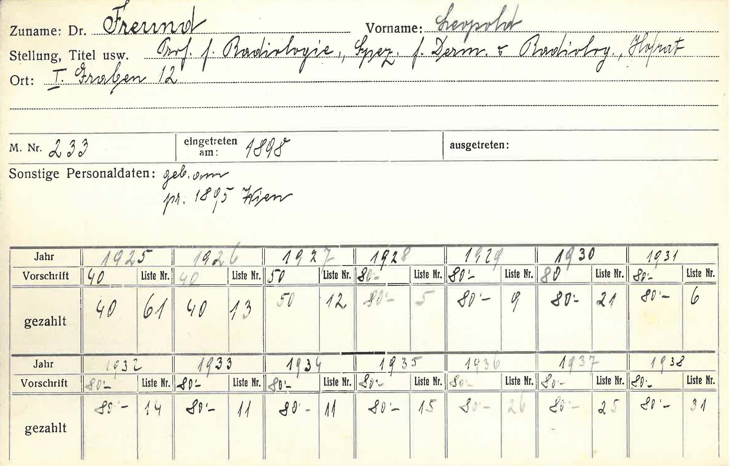 Untersuchungen. 1938 wurde Freund seines Amtes enthoben. Er erhielt