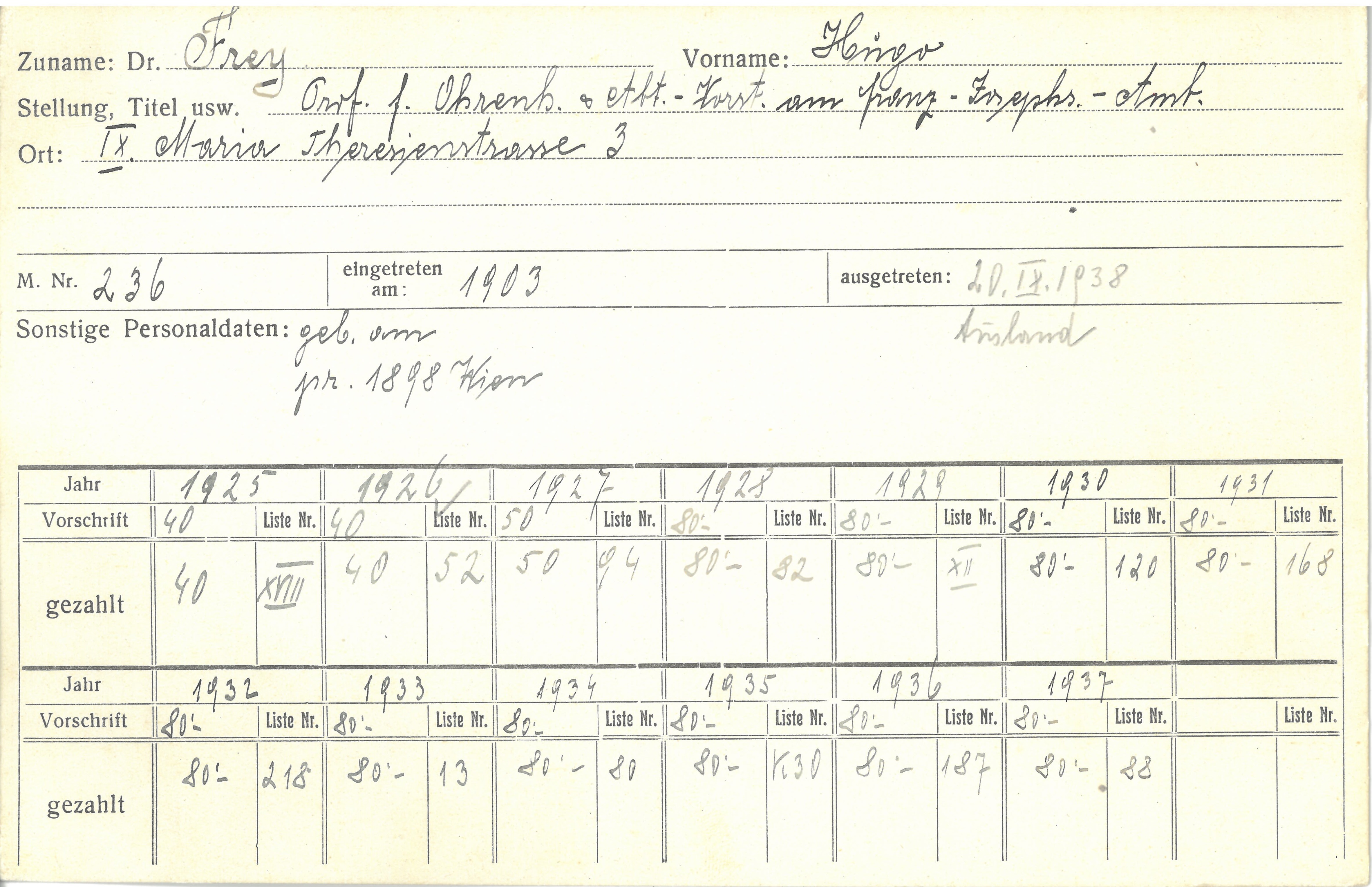 wurde Hugo Freys Venia Legendi widerrufen und er verlor seine berufliche