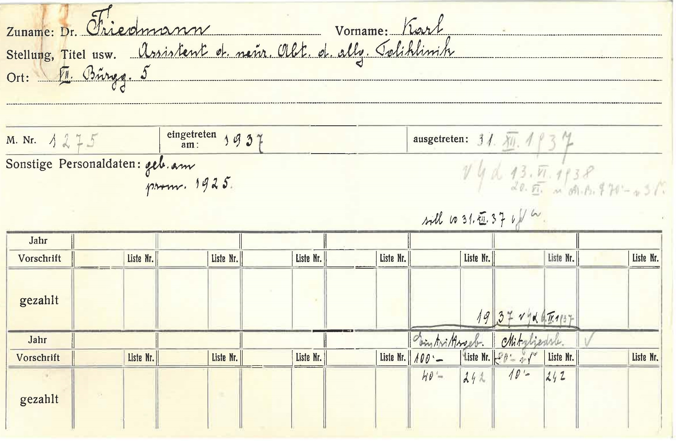 Für Karl Friedmann übermittelt uns Isidor Fischer keine Vorträge in der Gesellschaft der Ärzte in Wien.