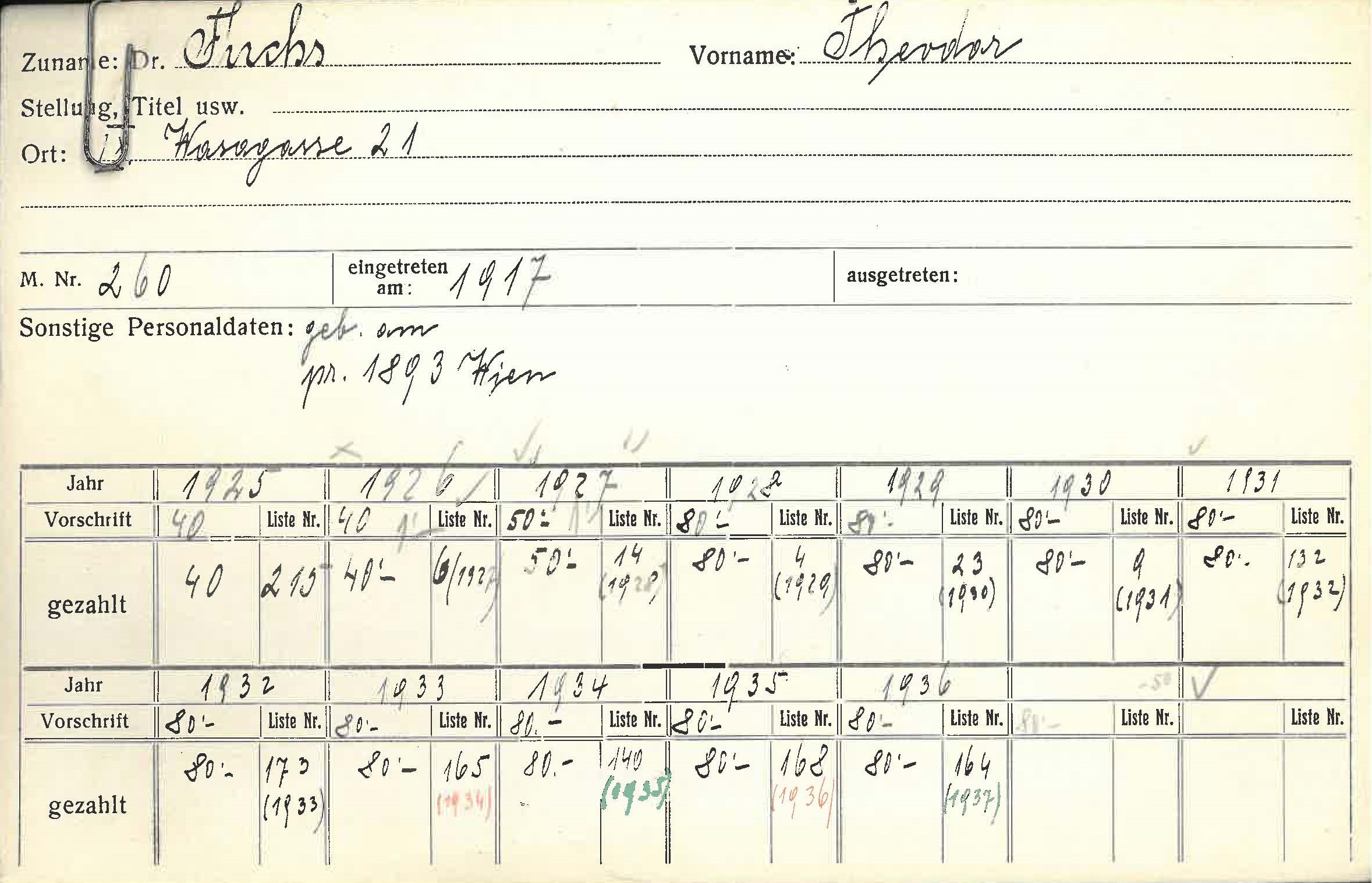 Für Theodor Fuchs überliefert uns Isidor Fischer keine Vorträge in der Gesellschaft der Ärzte in Wien.
