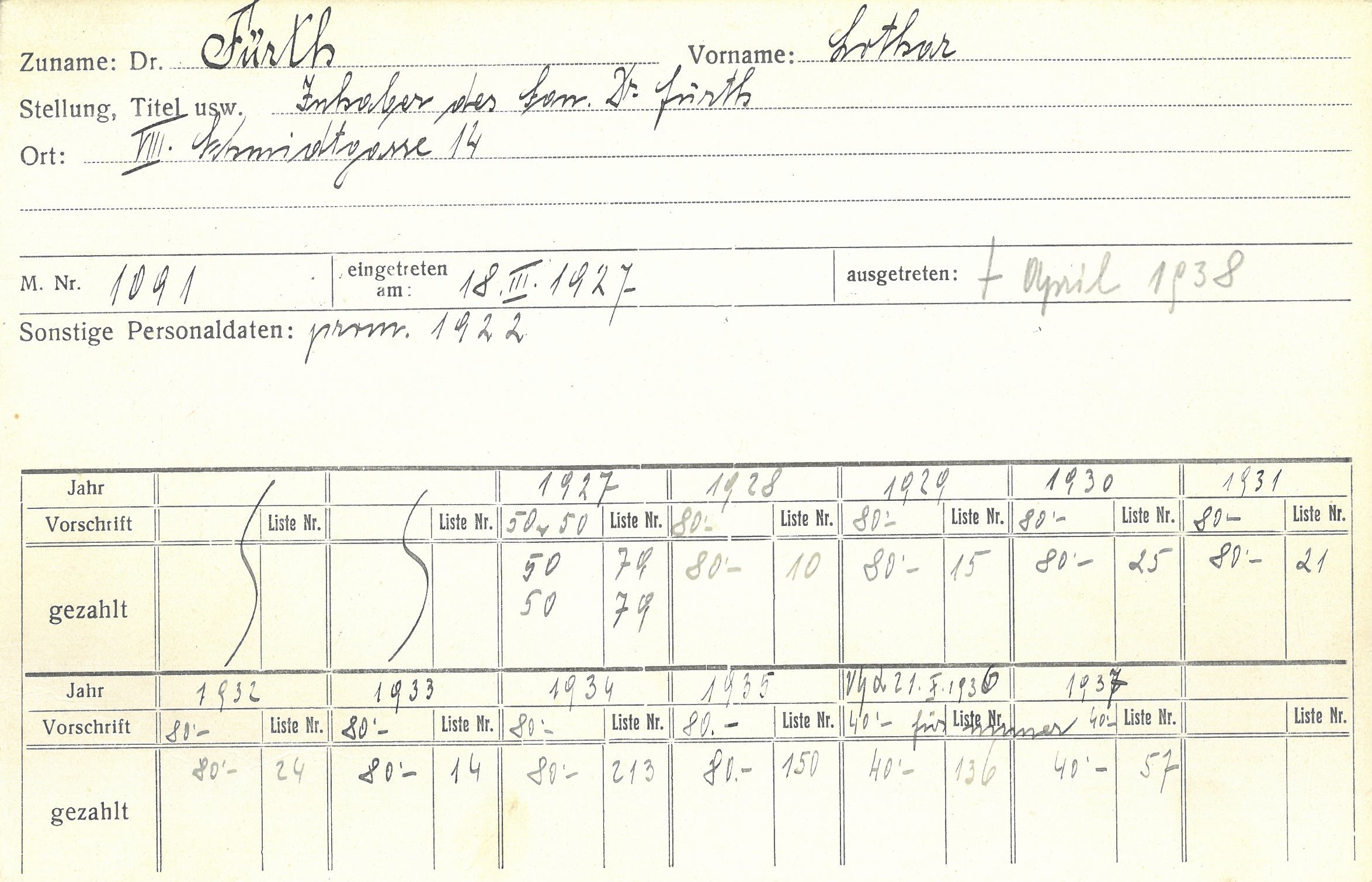 Lothar Fürth nahm sich nach antijüdischen Ausschreitungen am 3. April 1938 gemeinsam mit seiner Ehefrau Susanne durch eine Giftinjektion das Leben.