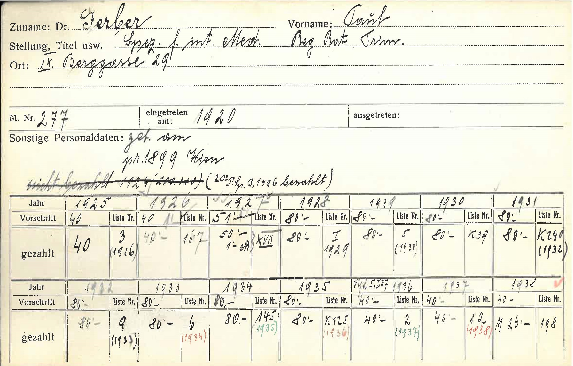 Gerber hielt nach Isidor Fischer keine Vorträge in der Gesellschaft der Ärzte in Wien.