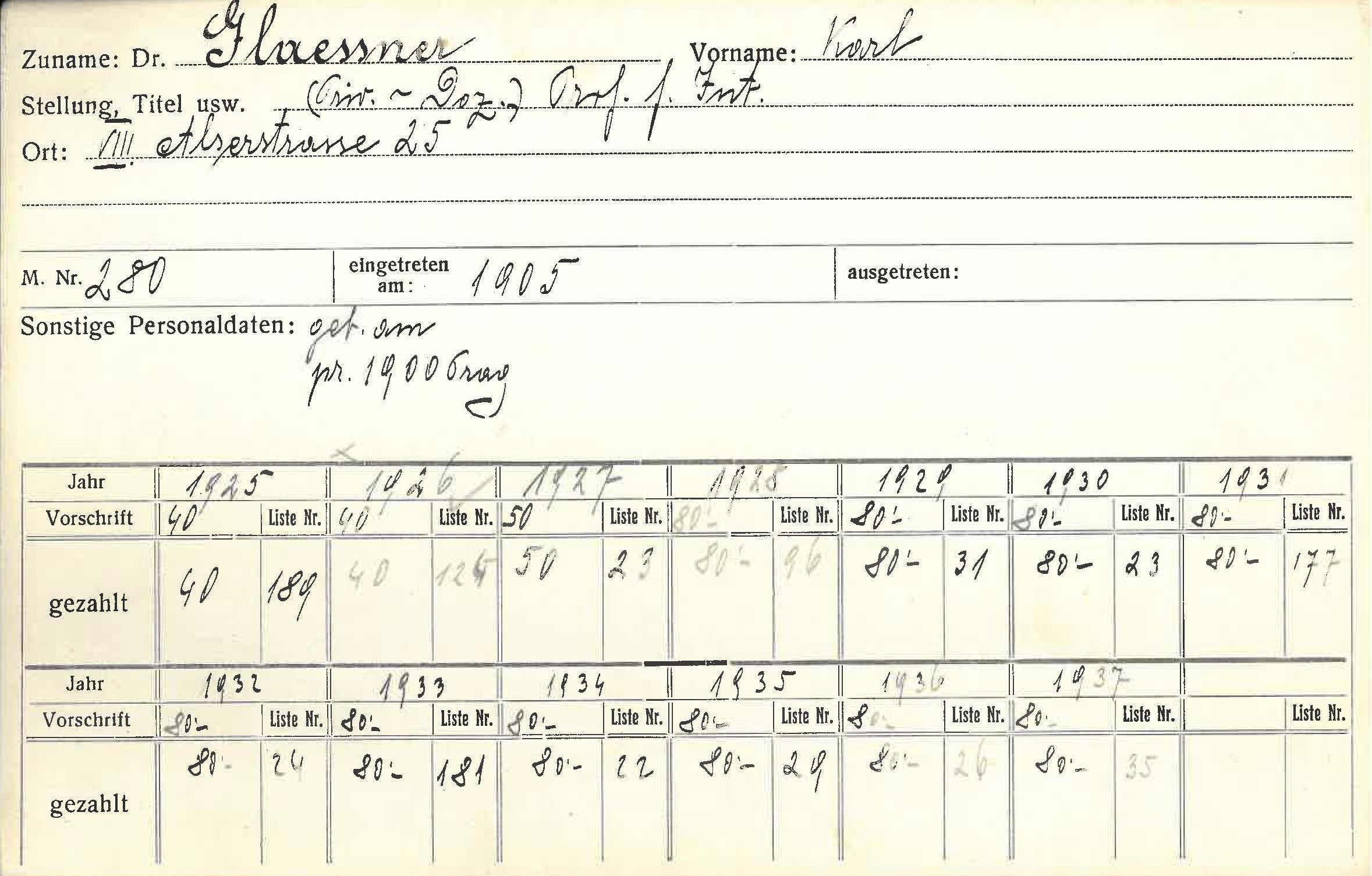 Mit Ende April 1938 wurde Karl Glaessner in seiner Stellung als Primar des