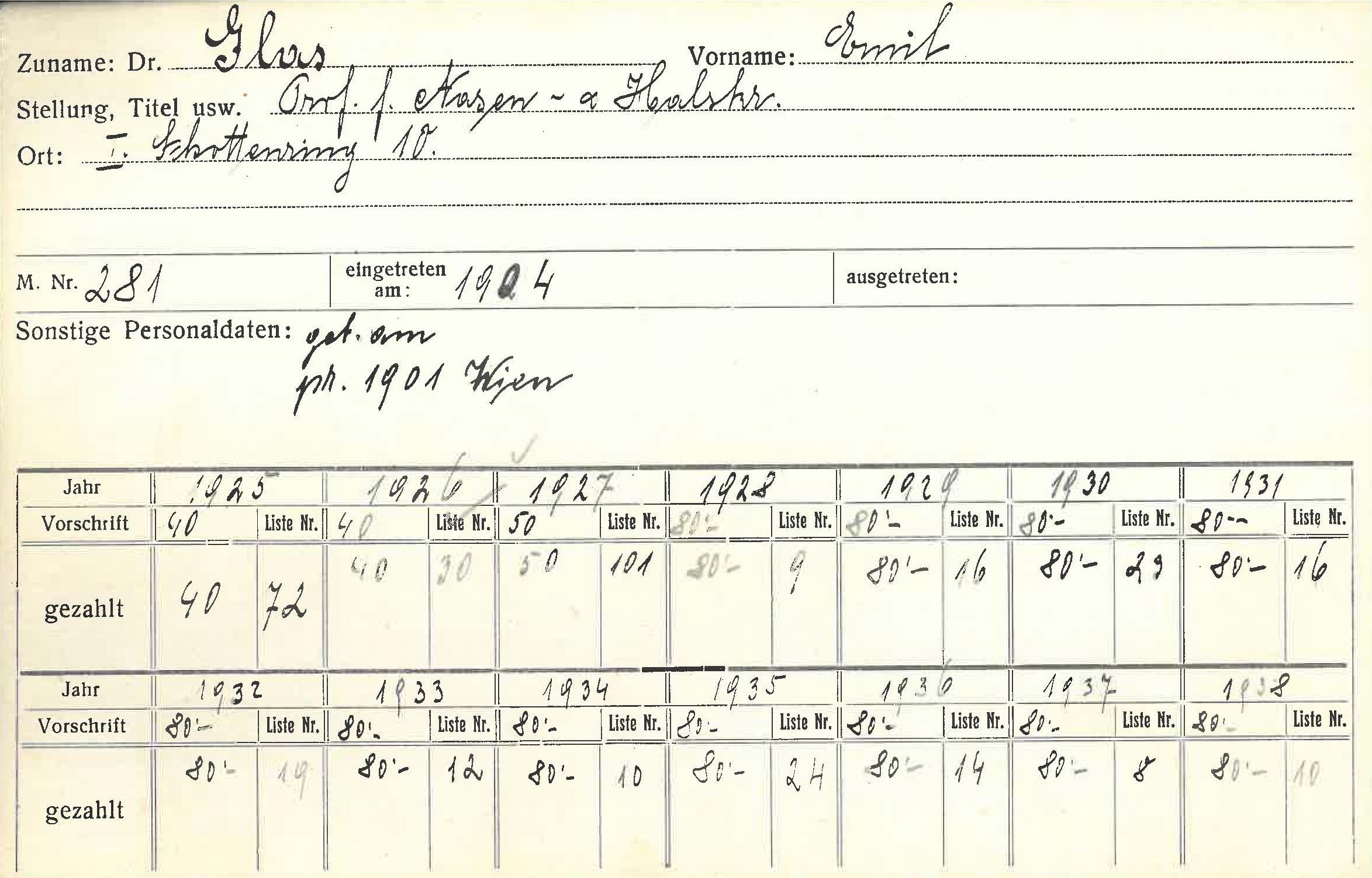 Nachdem ihm 1938 die Venia Legendi entzogen wurde, durfte Emil Glas