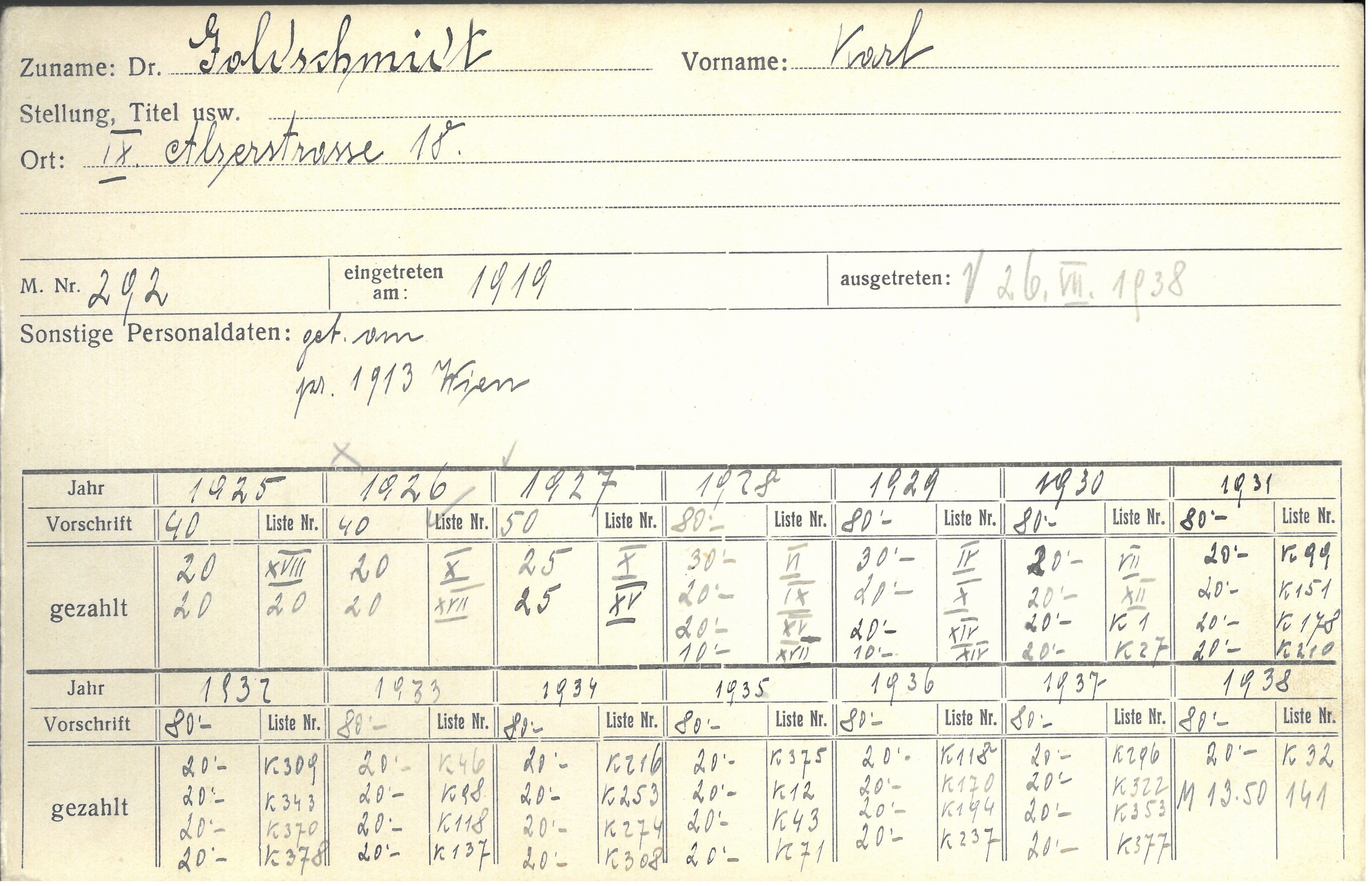 Adresse (von Karteikarte) Alser Straße 18, 1090 Wien