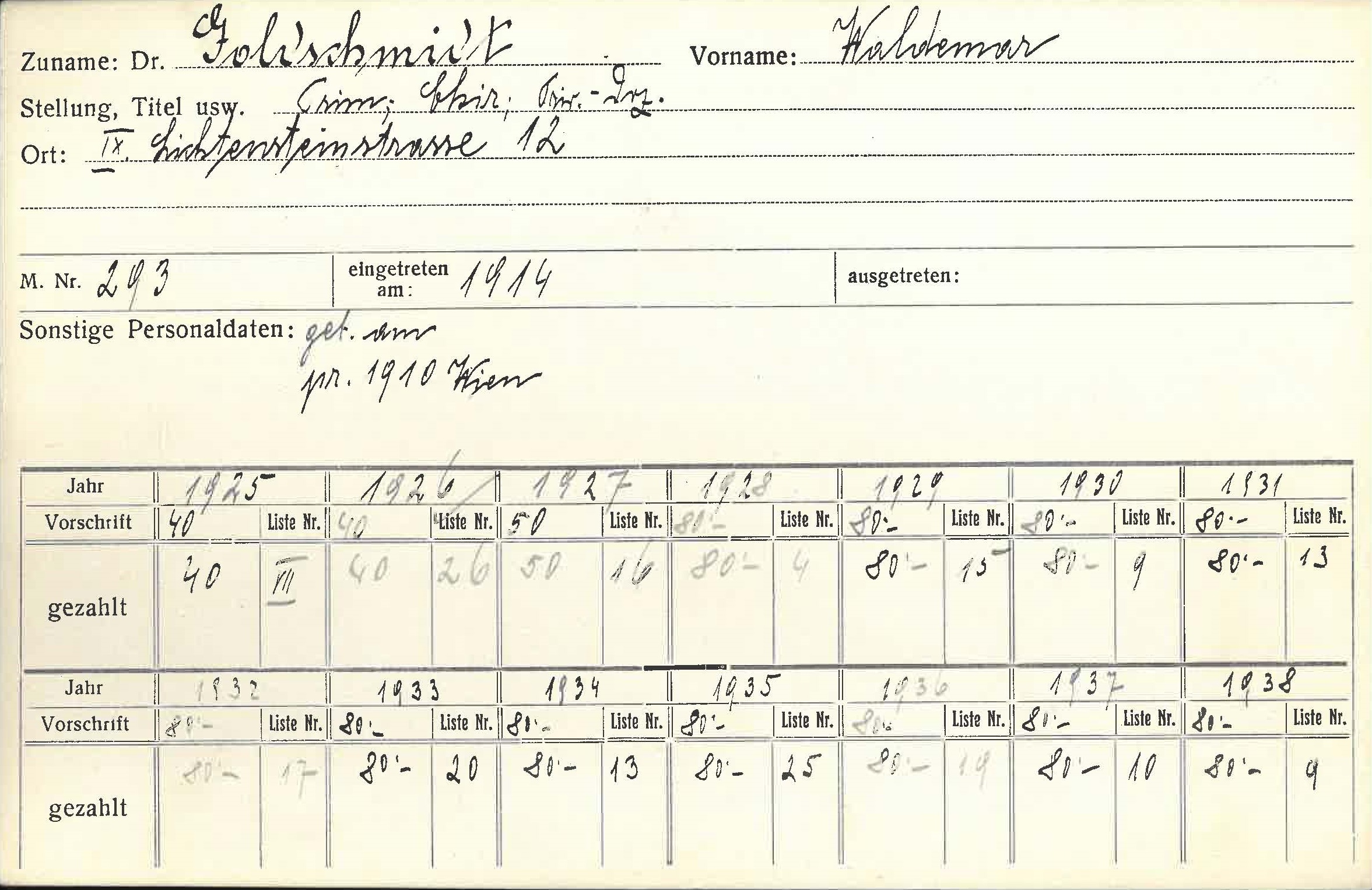 Waldemar Goldschmidt wurde im April 1938 von der Universität vertrieben,