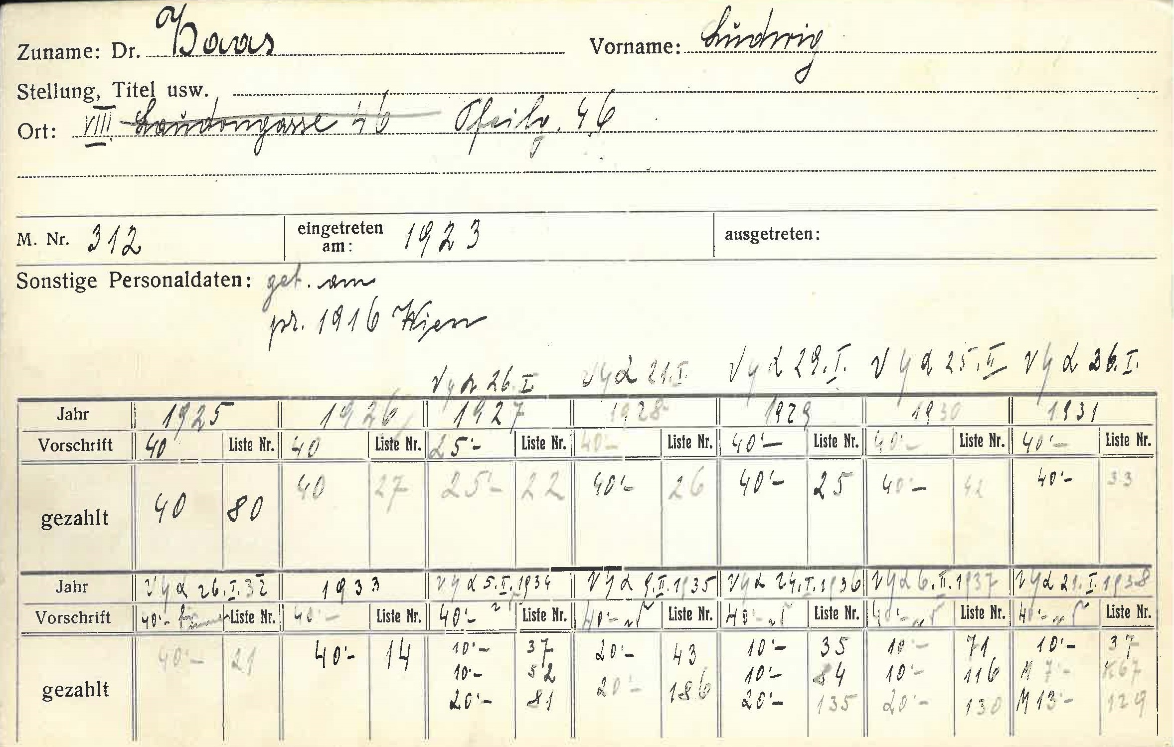 Adresse (von Karteikarte) Obere Donaustraße 73, 1020 Wien