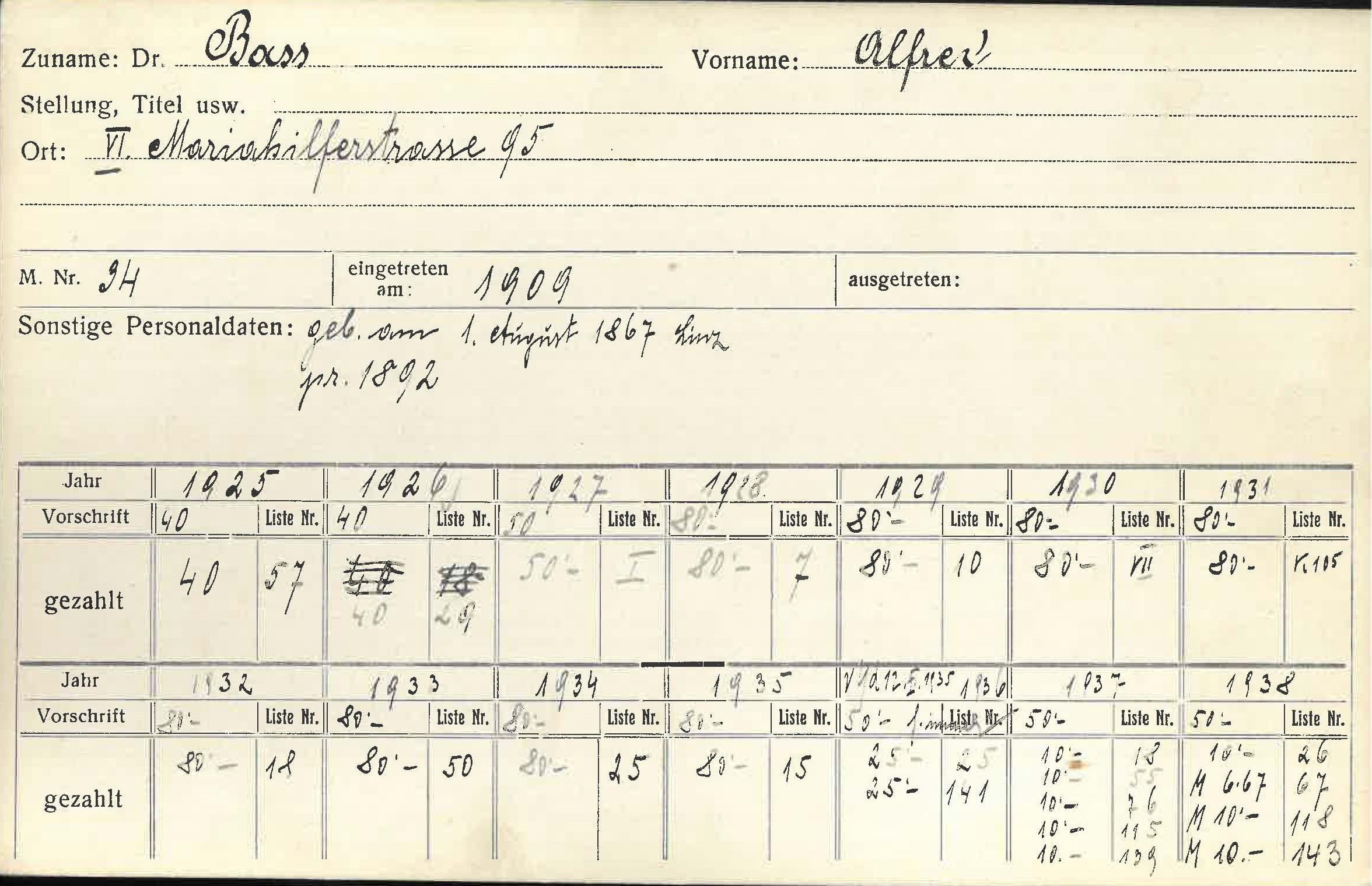 Alfred Bass wurde im Holocaust ermordet; er wurde am 28.10.1941 nach Litzmannstadt deportiert.