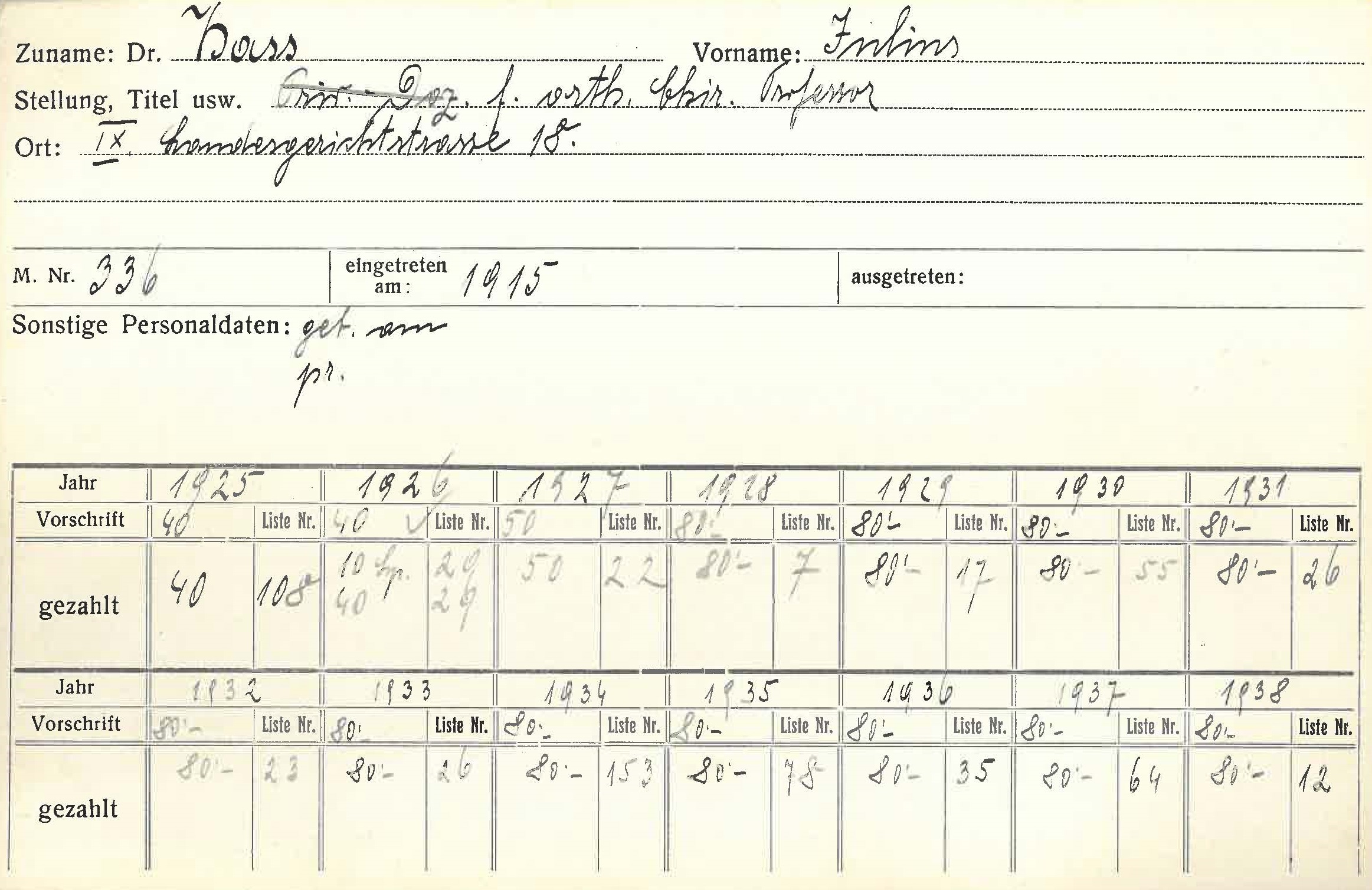 Julius Hass hatte 1910 in Wien promoviert und knapp zehn Jahre später seine