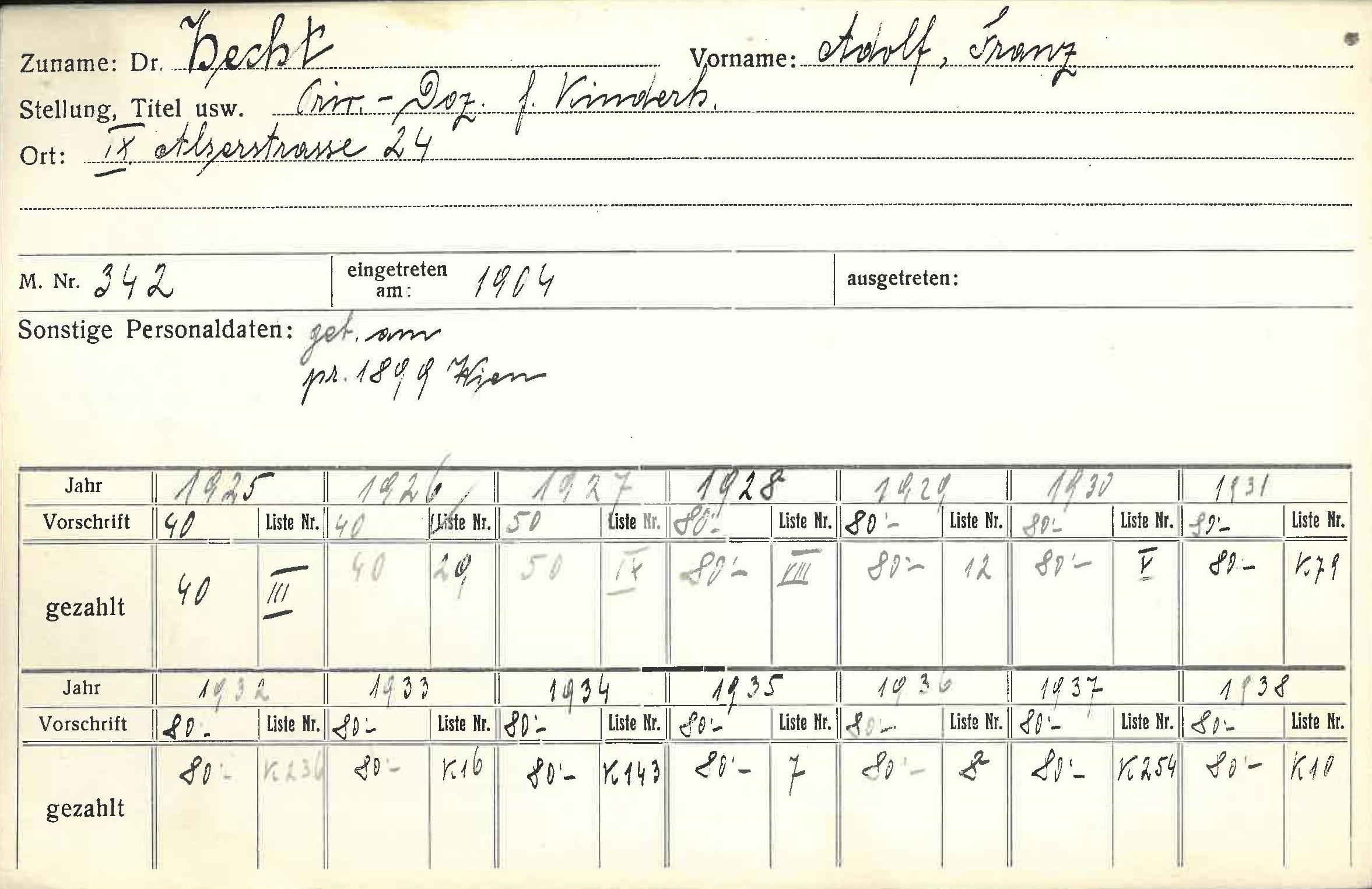 Adolf Franz Hecht studierte in Wien Medizin und promovierte 1899. Zunächst