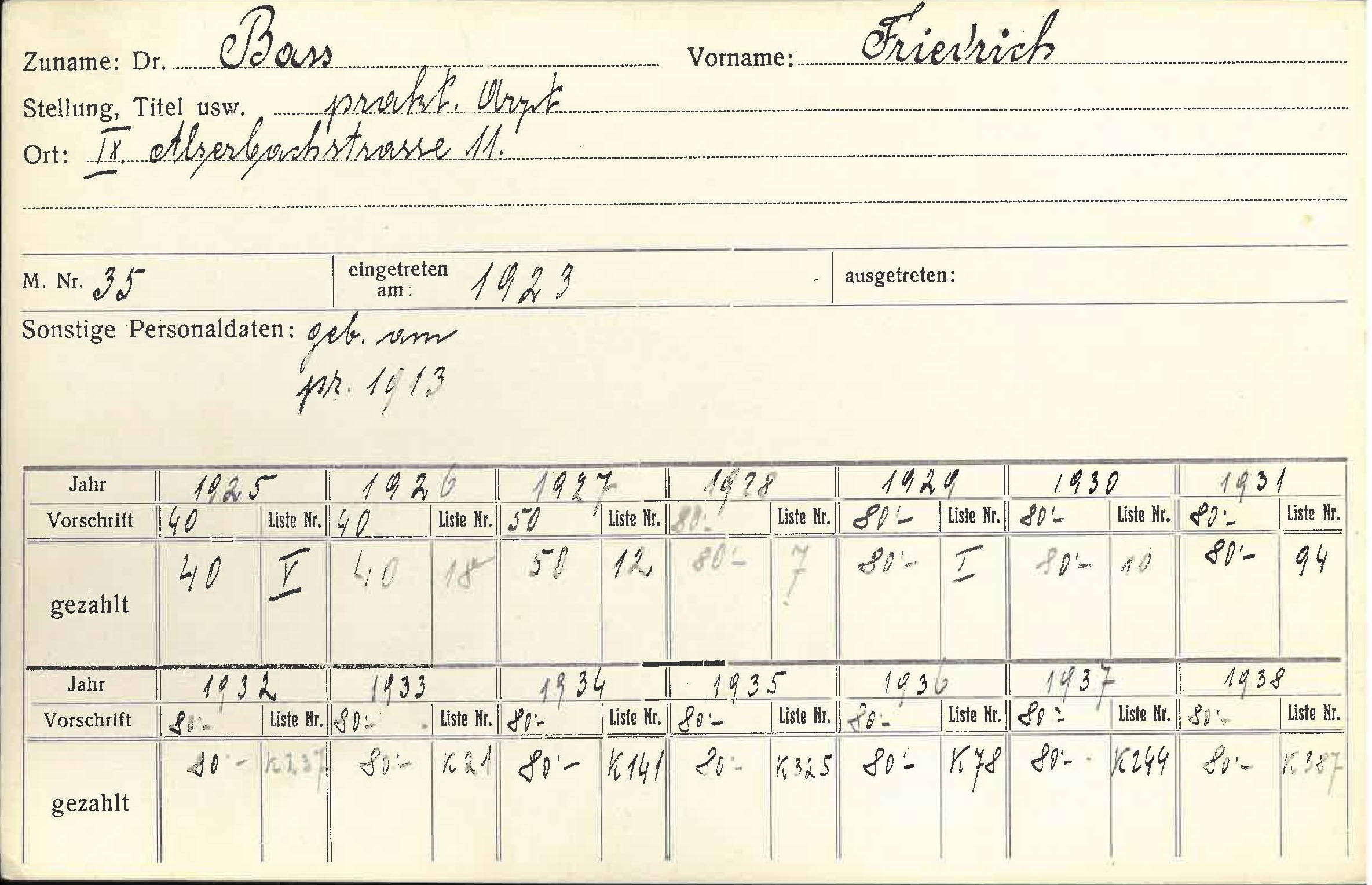 Adresse (von Karteikarte) Alserbachstraße 11, 1090 Wien