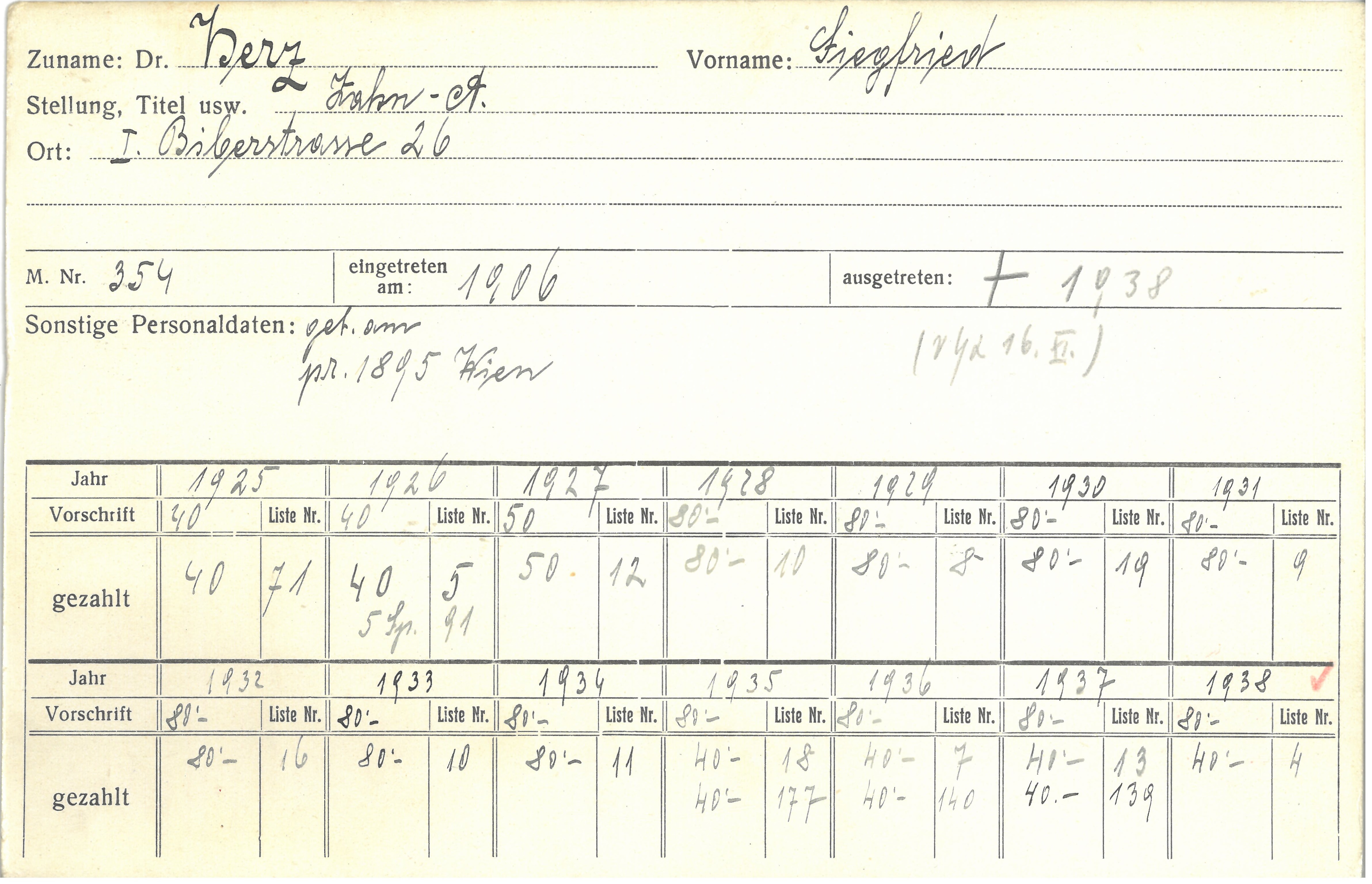 Adresse (von Karteikarte) Biberstraße 26, 1010 Wien