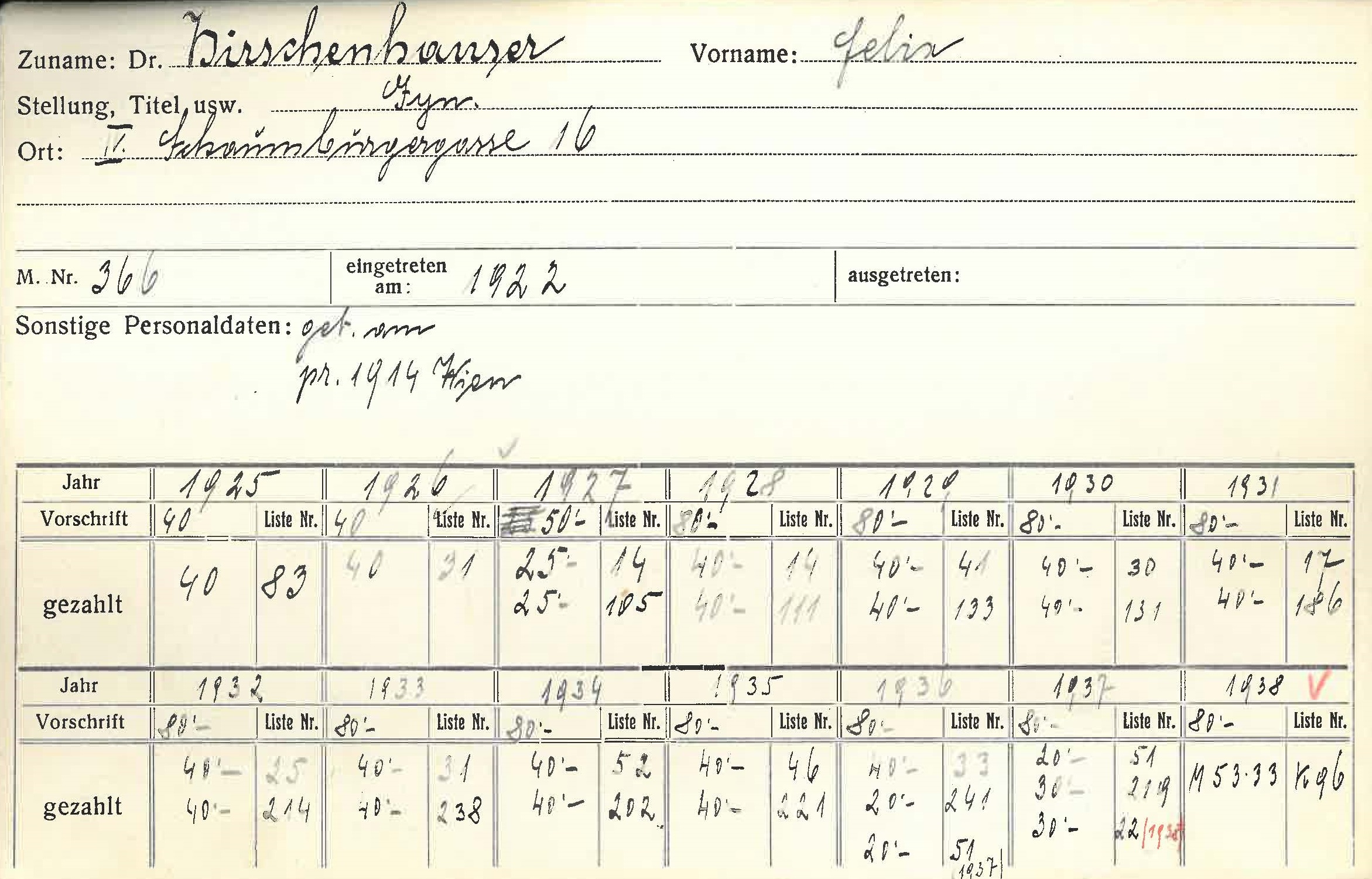 Felix Hirschenhauser gelang die Flucht in die USA, wo er am 1. November 1940 in New York verstarb.