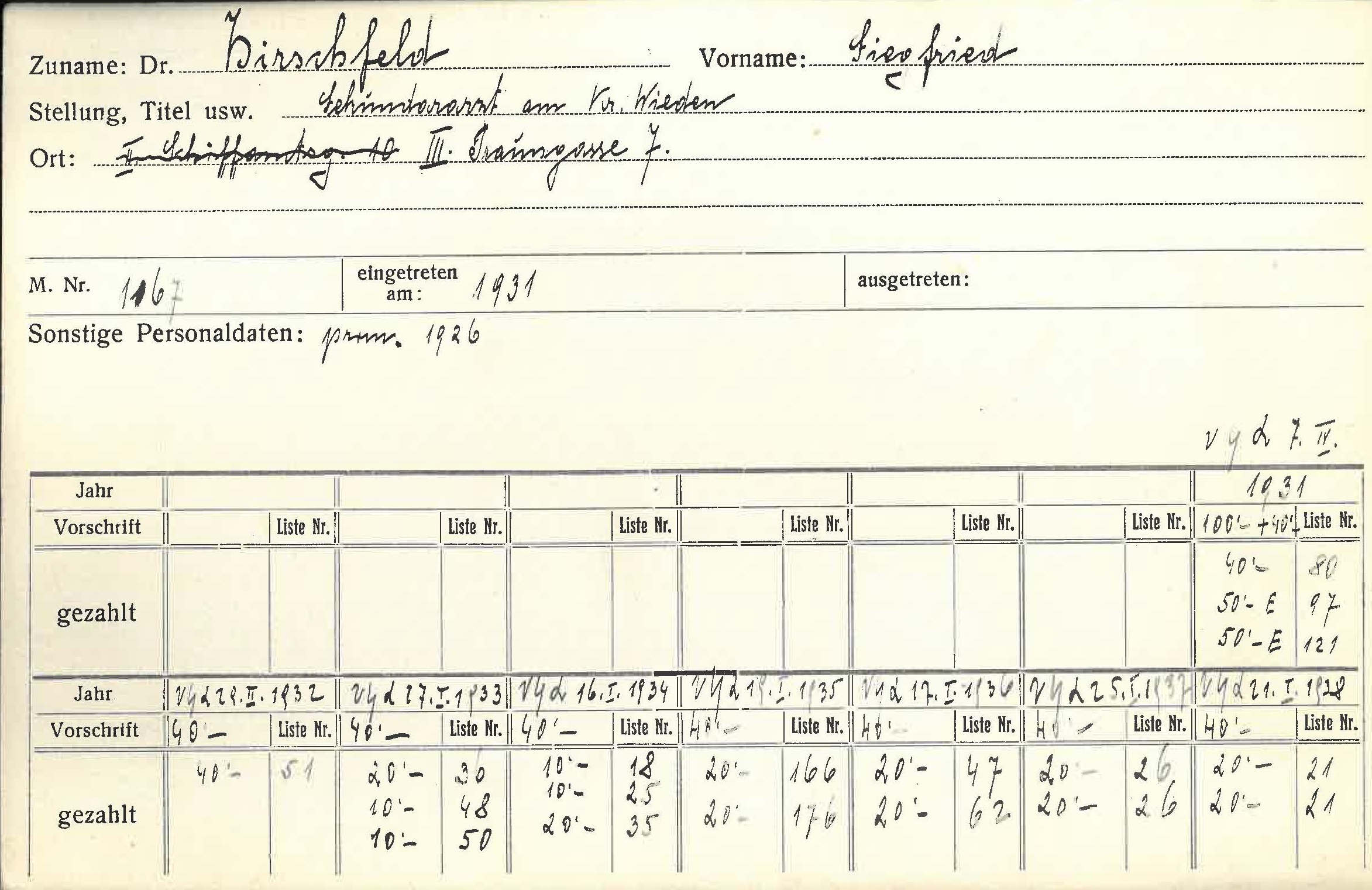 Siegfried Hirschfeld gelang die Flucht in die USA. Er starb 1952 im Alter von 52 Jahren in New York, wo er als praktischer Arzt in Brooklyn tätig war, an einem Herzinfarkt.