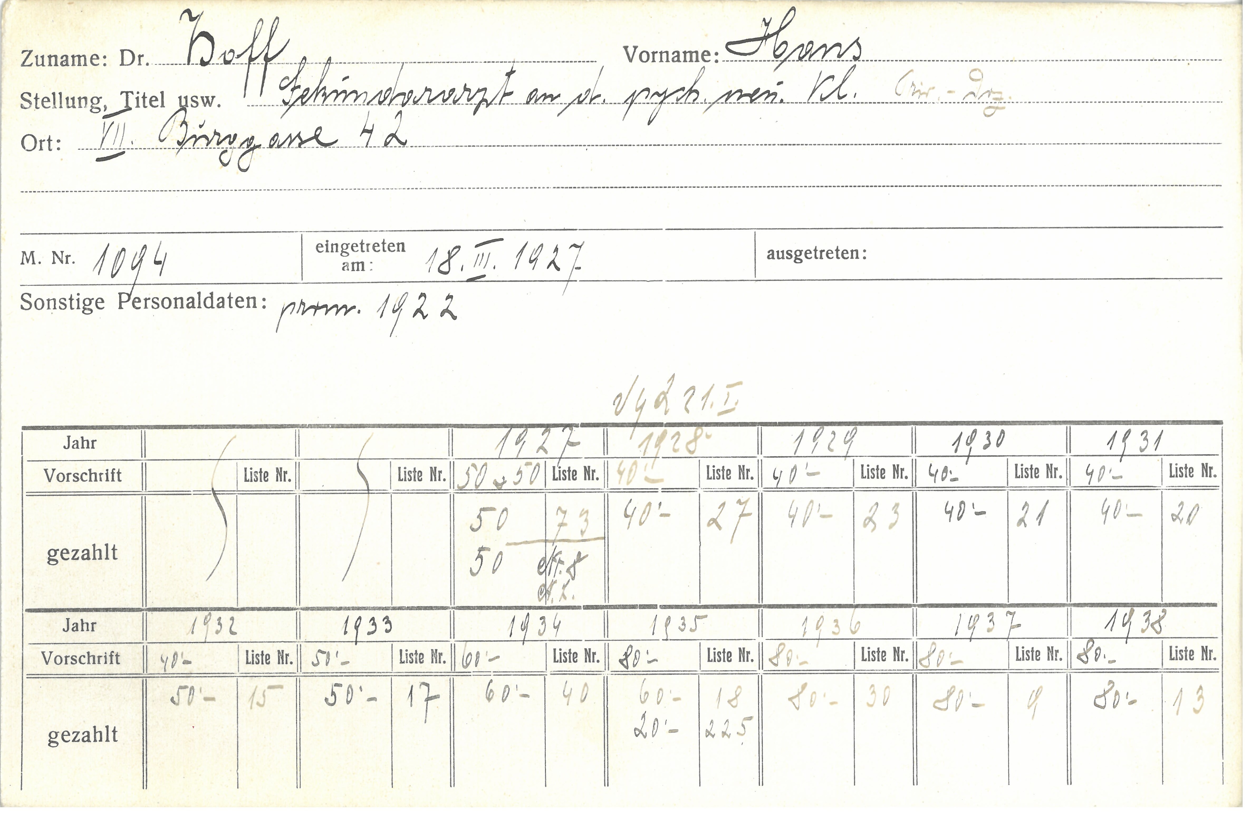 mit seinem Bruder Dr. Herbert Hoff führte er eine Praxis im 7. Bezirk. Seine