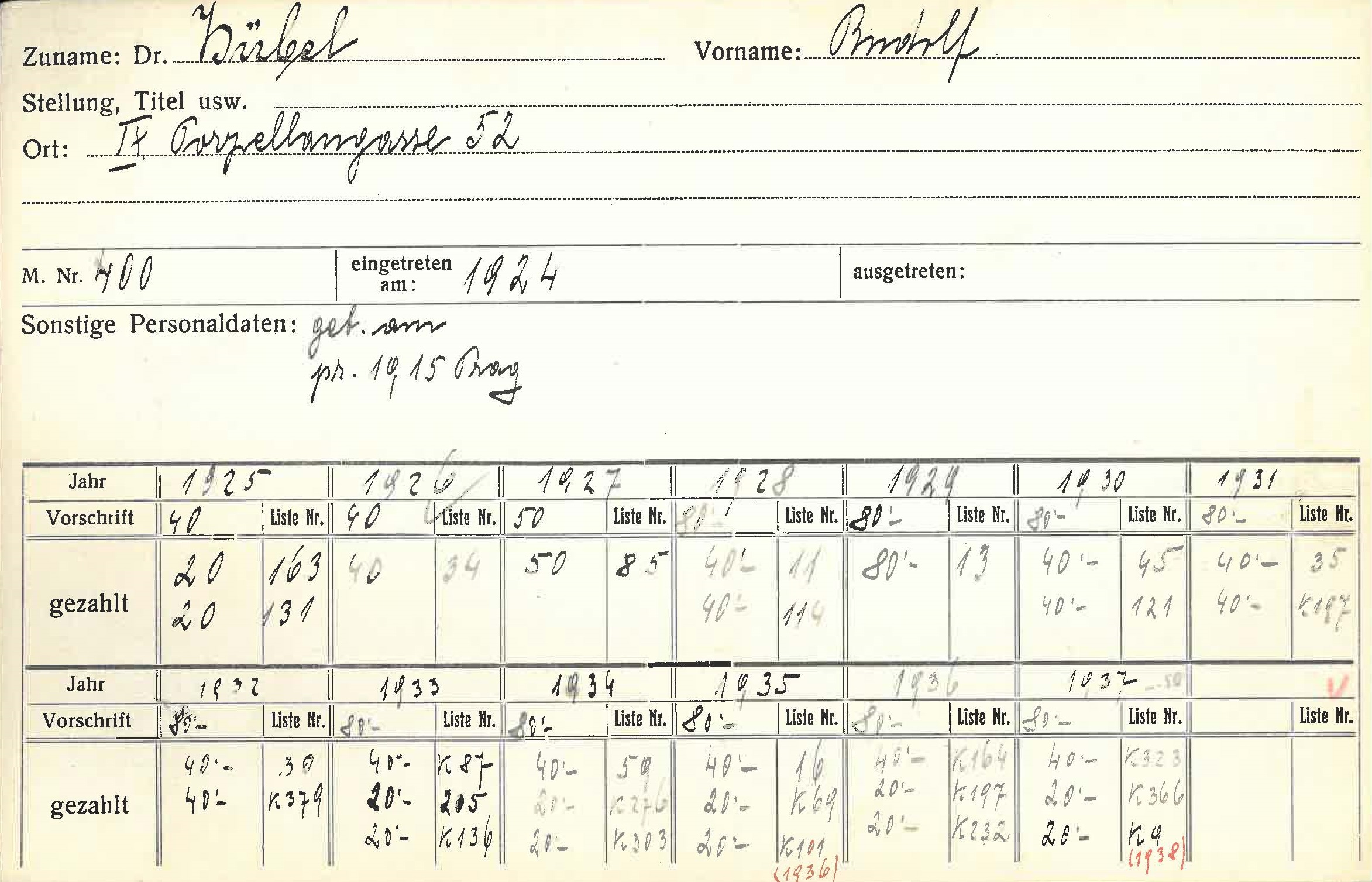 Adresse (von Karteikarte) Porzellangasse 52, 1090 Wien