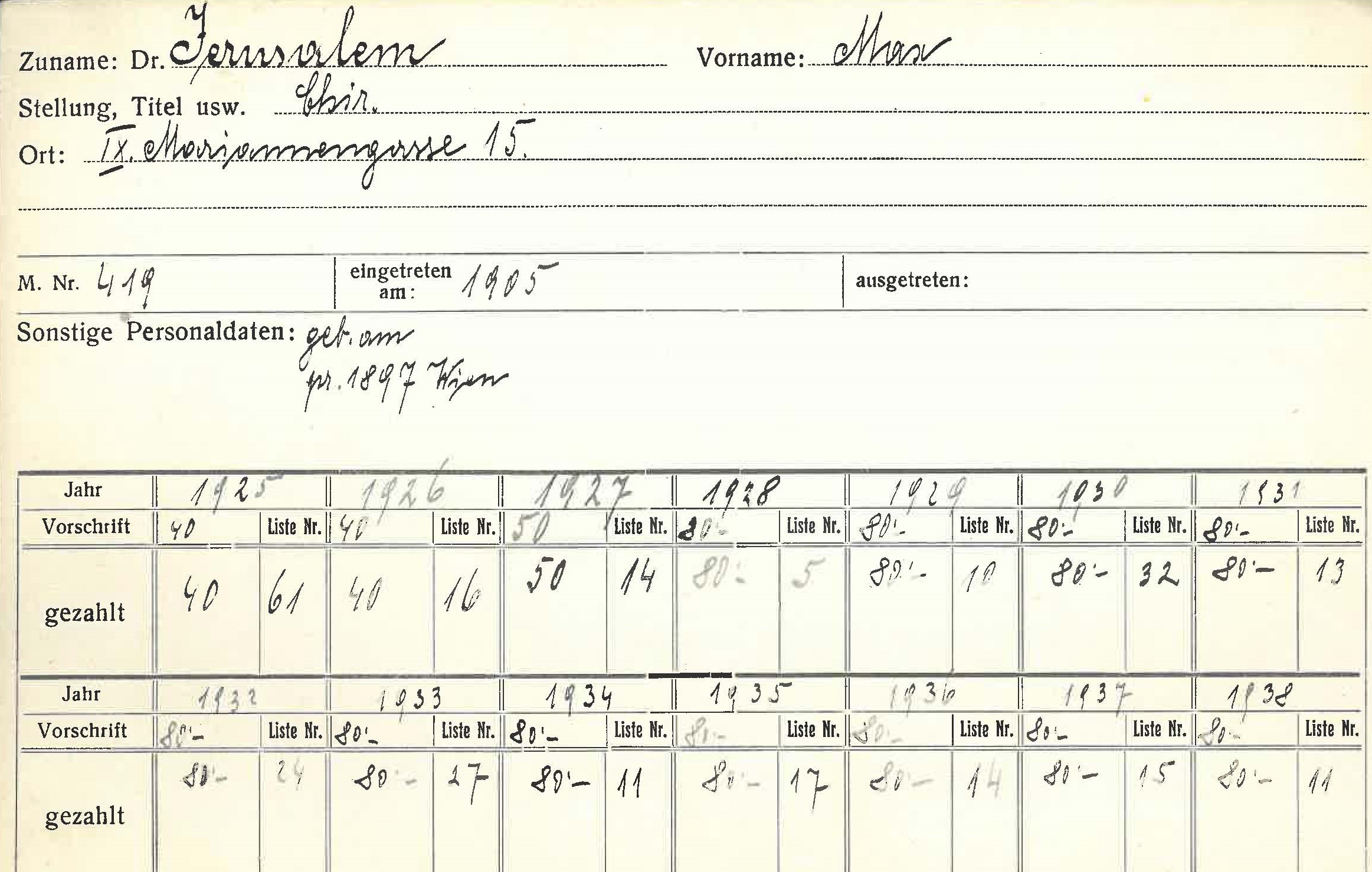 Max Jerusalem (1873–1942) und seine Frau Julie (1873–1942) begingen im September 1942 gemeinsam Selbstmord, da ihre Deportation nach Theresienstadt bevorstand.