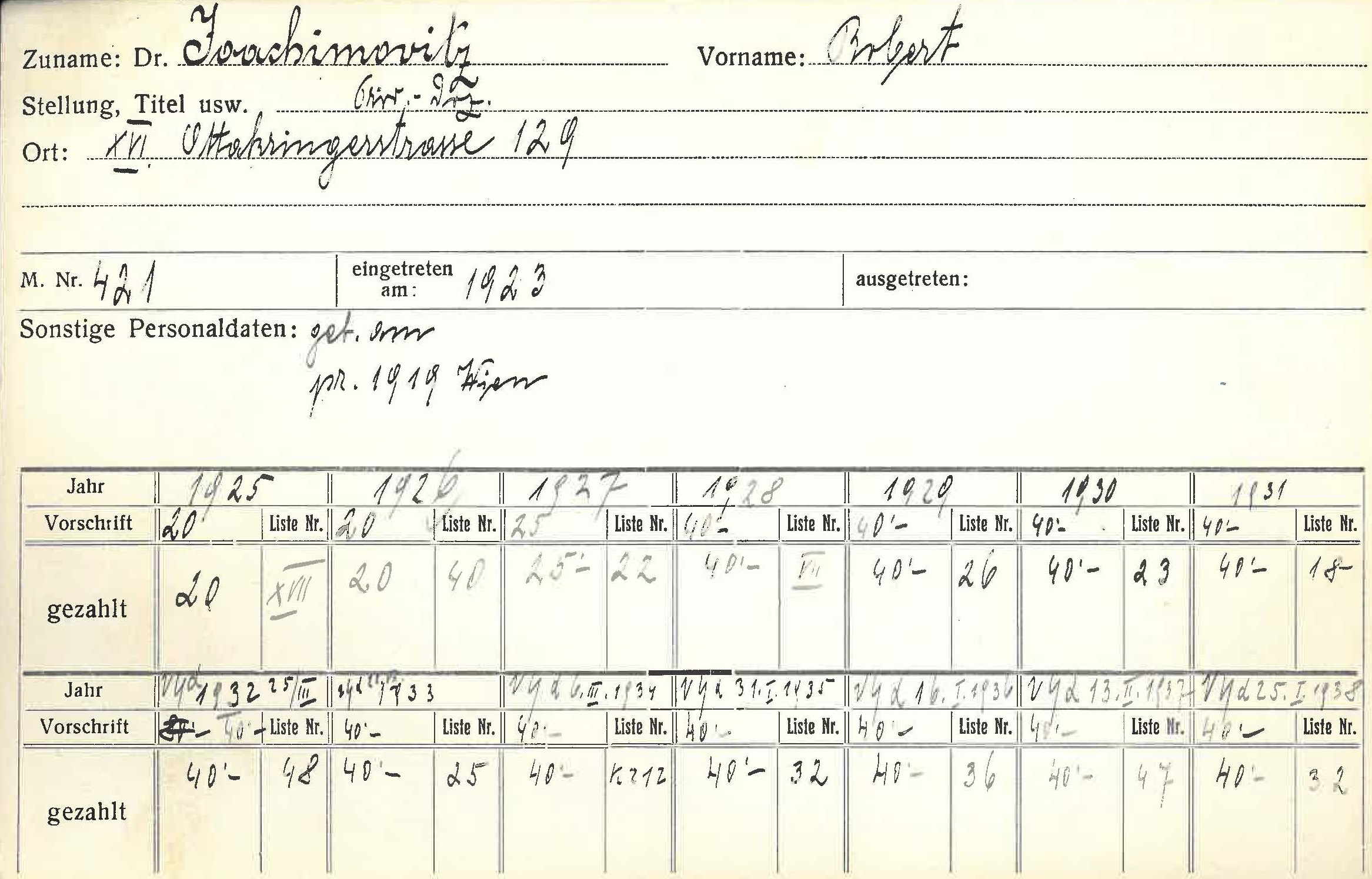 Robert Joachimovits promovierte 1919 und arbeitete zunächst als Assistenzarzt