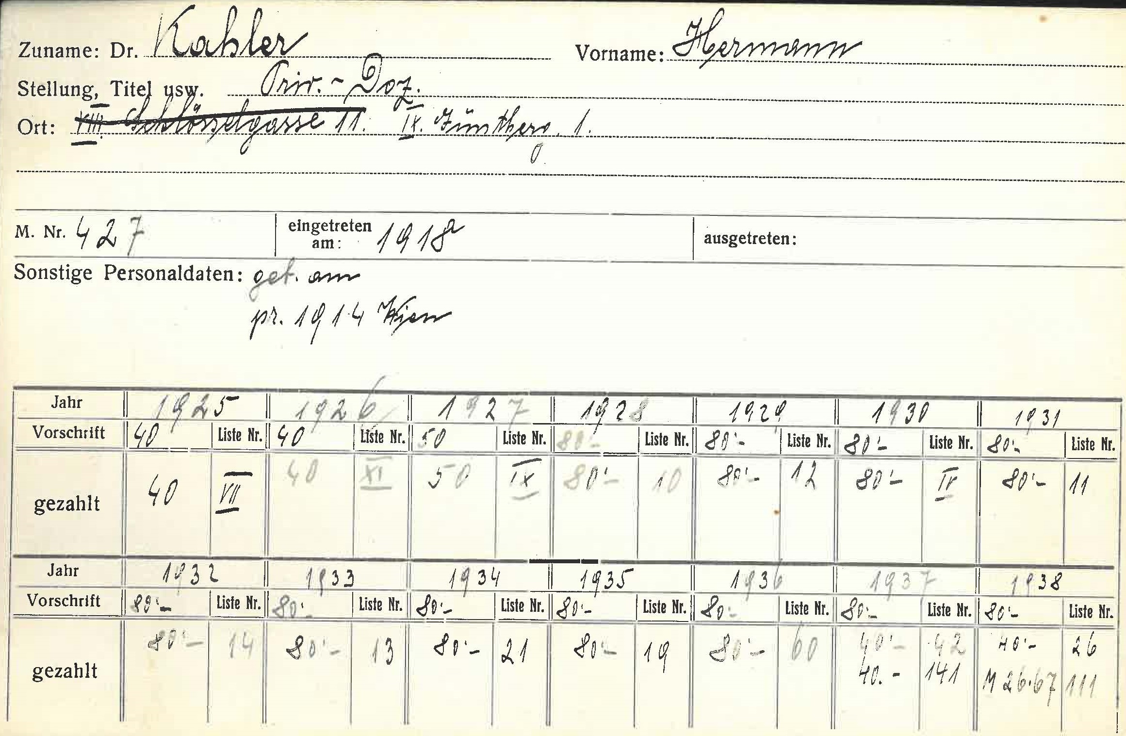 wurde Kahler an die Krankenanstalt Rudolfstiftung berufen, wo er bis 1940