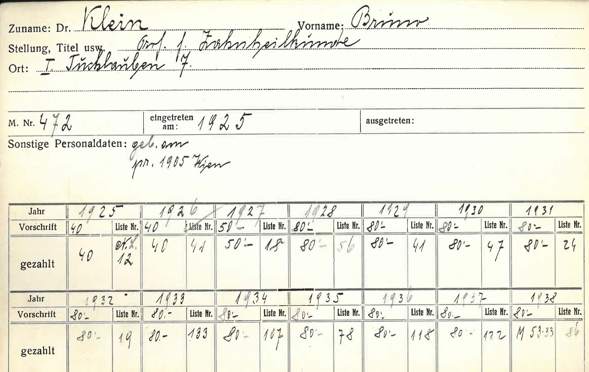 Bruno Klein studierte ab 1899 Medizin an der Universität Wien. Er lernte