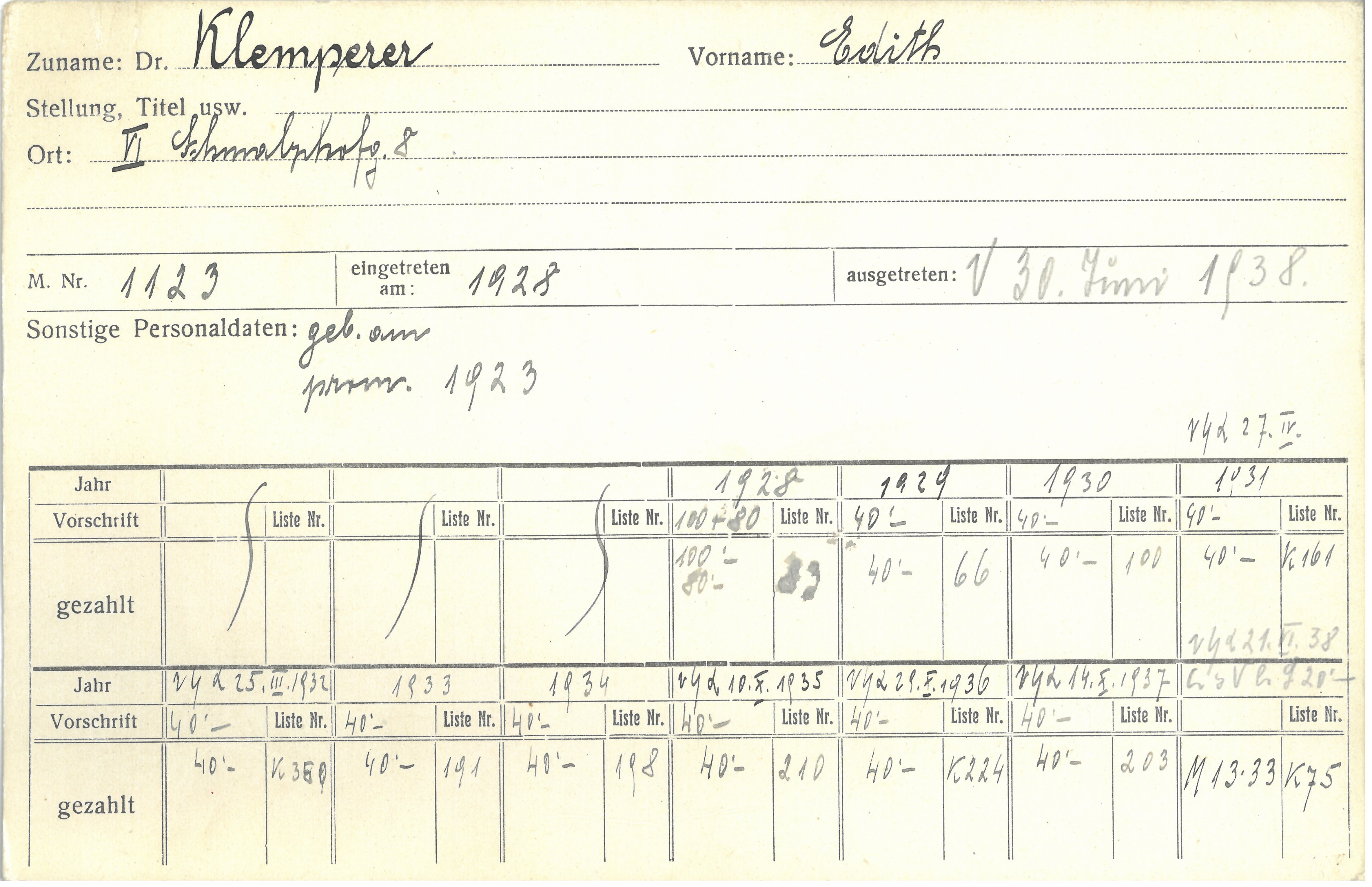 1924 – 1938 Assistenzärztin an der Neuropsychiatrischen Klinik von J. Wagner-Jauregg und Otto Pötzl