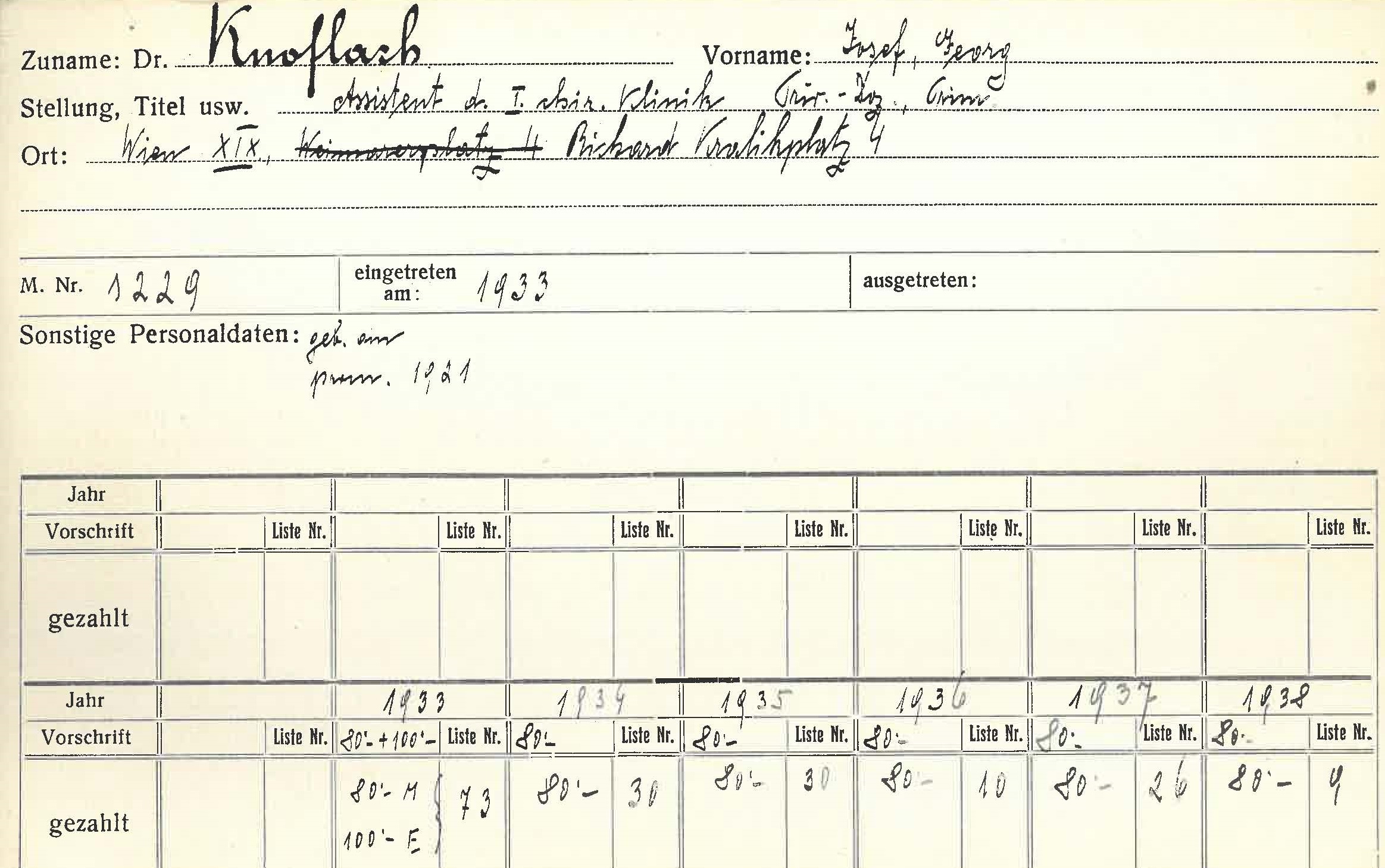 Nach dem „Anschluss“ stellte Knoflach einen Antrag auf Ernennung zum