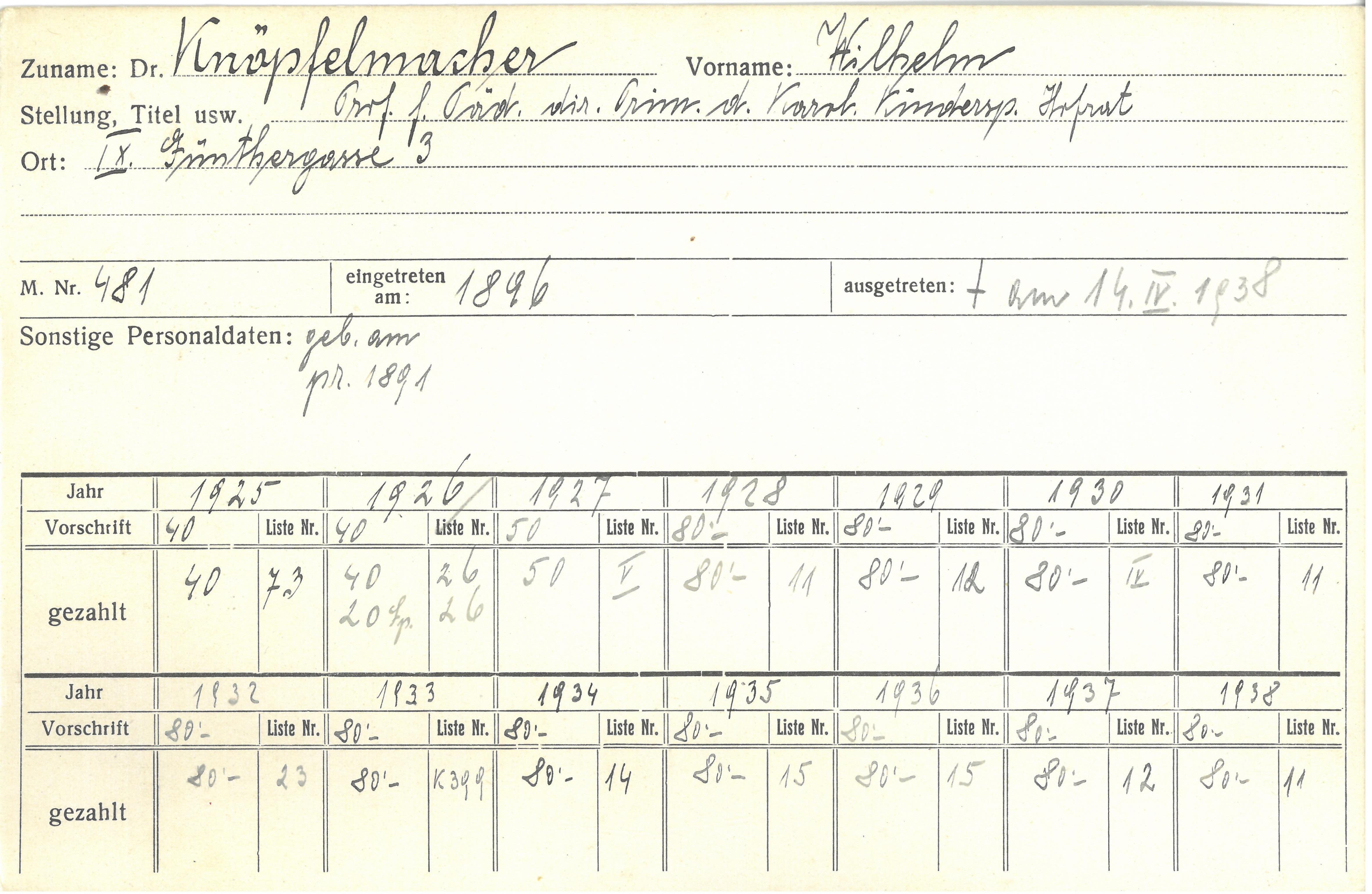 habilitiert. Knöpfelmacher lehrte fortan als Privatdozent, 1911 wurde er zum