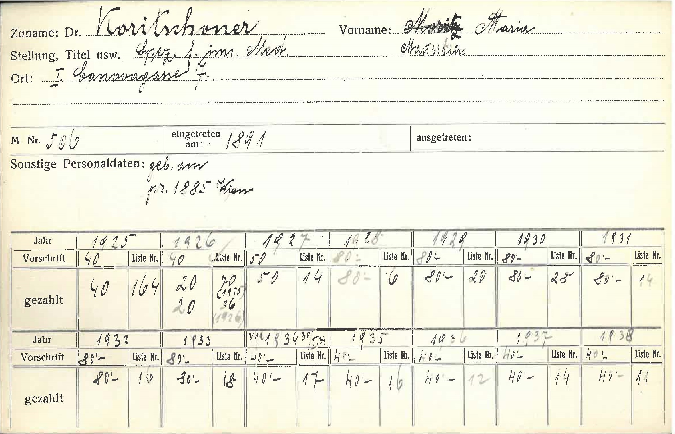 Mauritius Maria Koritschoner starb am 12. Juli 1941 Wien. Koritschoner war bis zu seinem Tod durch seine Frau, weil sie als "Arier" galt, geschützt.