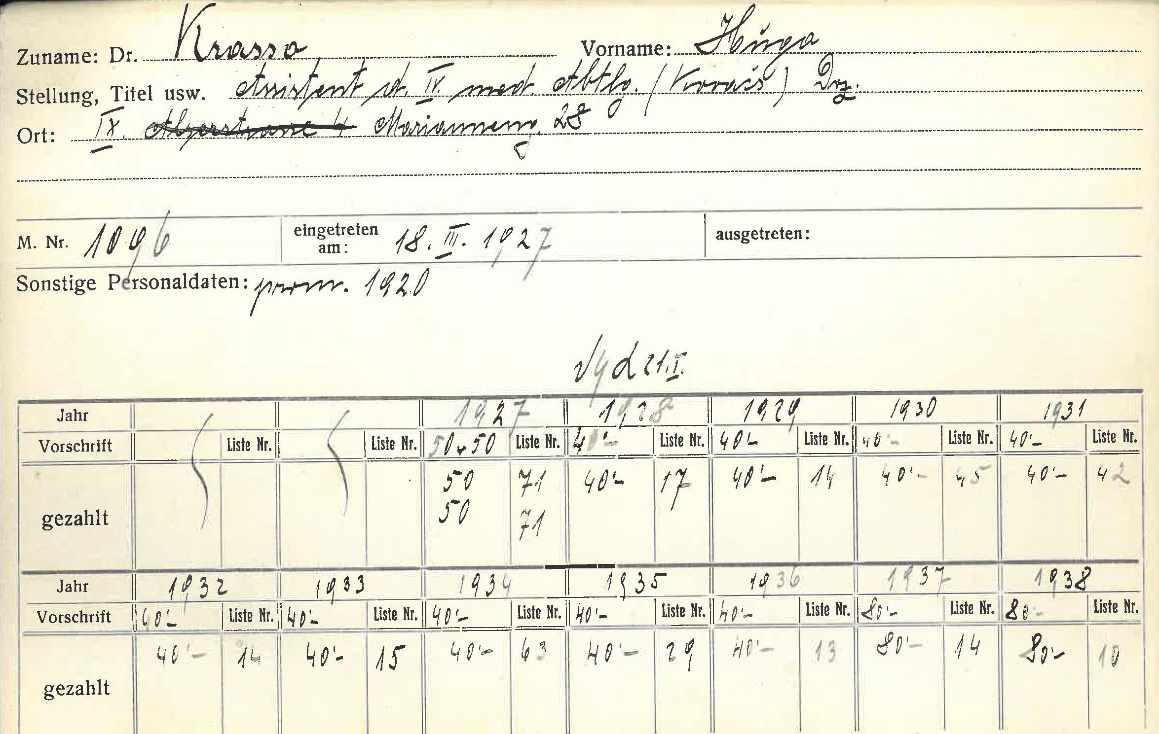 Universitätsklinik in Wien wurde. Hugo Krasho habilitierte sich Mitte der