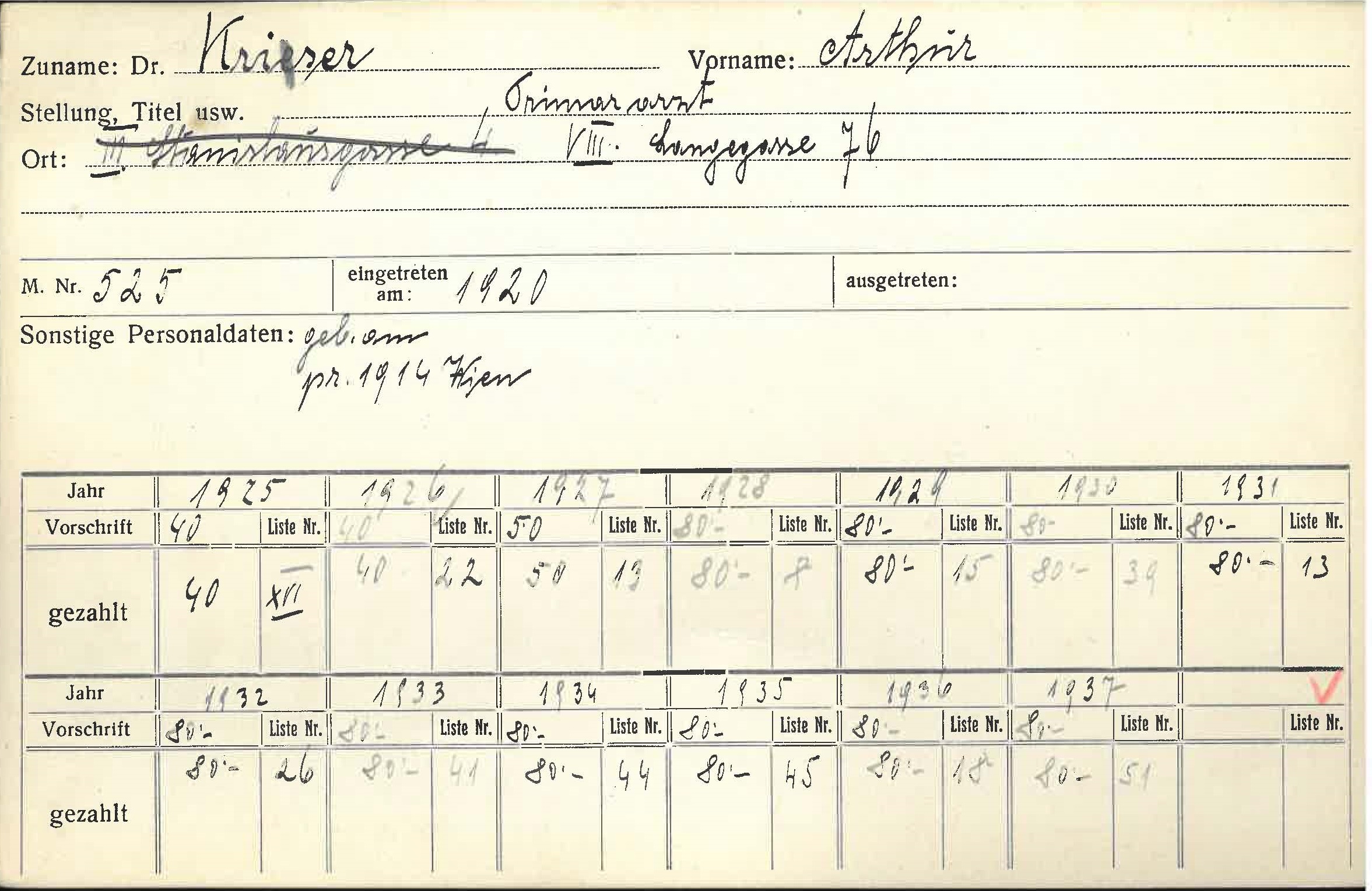 Arthur Kriser stirbt im Juni 1938 in Wien.