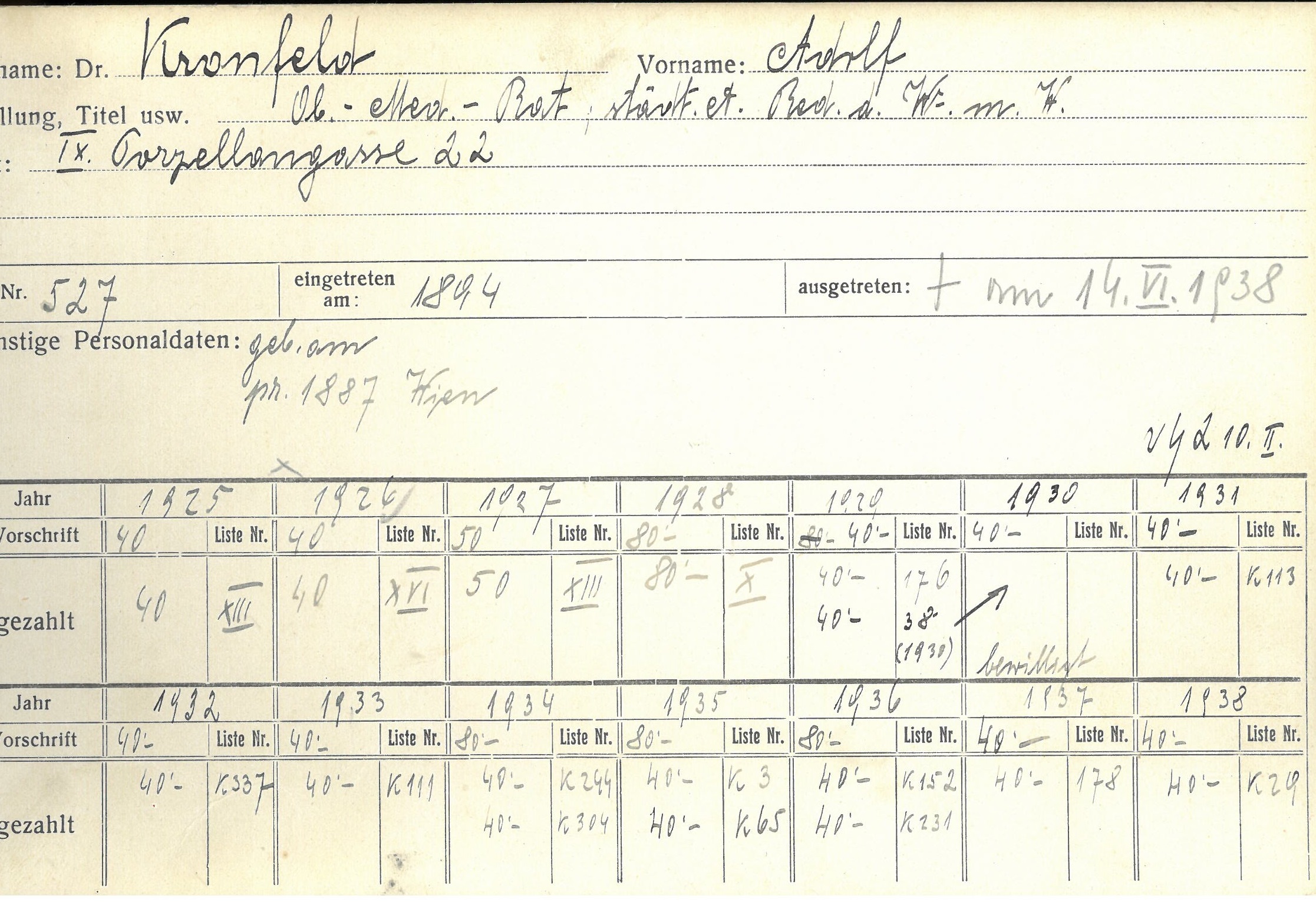 Adolf Kronfeld stirbt am 14. Juni 1938 in Wien.