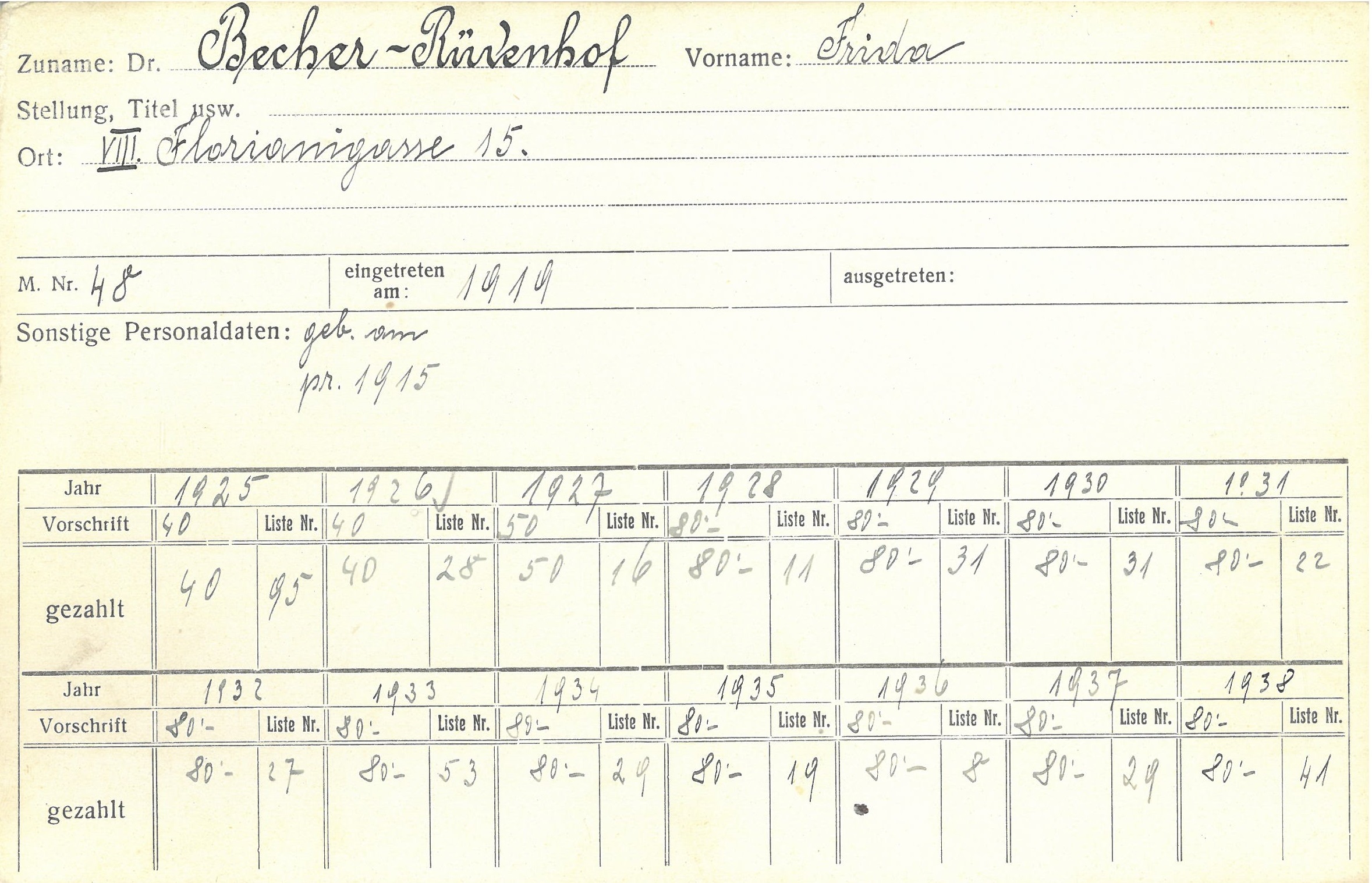 Walter Mentzel: Frida Becher von Rüdenhof (1874–1951) – Medizinerin – Frauenrechtsaktivistin – NS-Verfolgte. In: VanSwietenBlog, Universitätsbibliothek Medizinische Universität Wien, 4. Juni 2020.