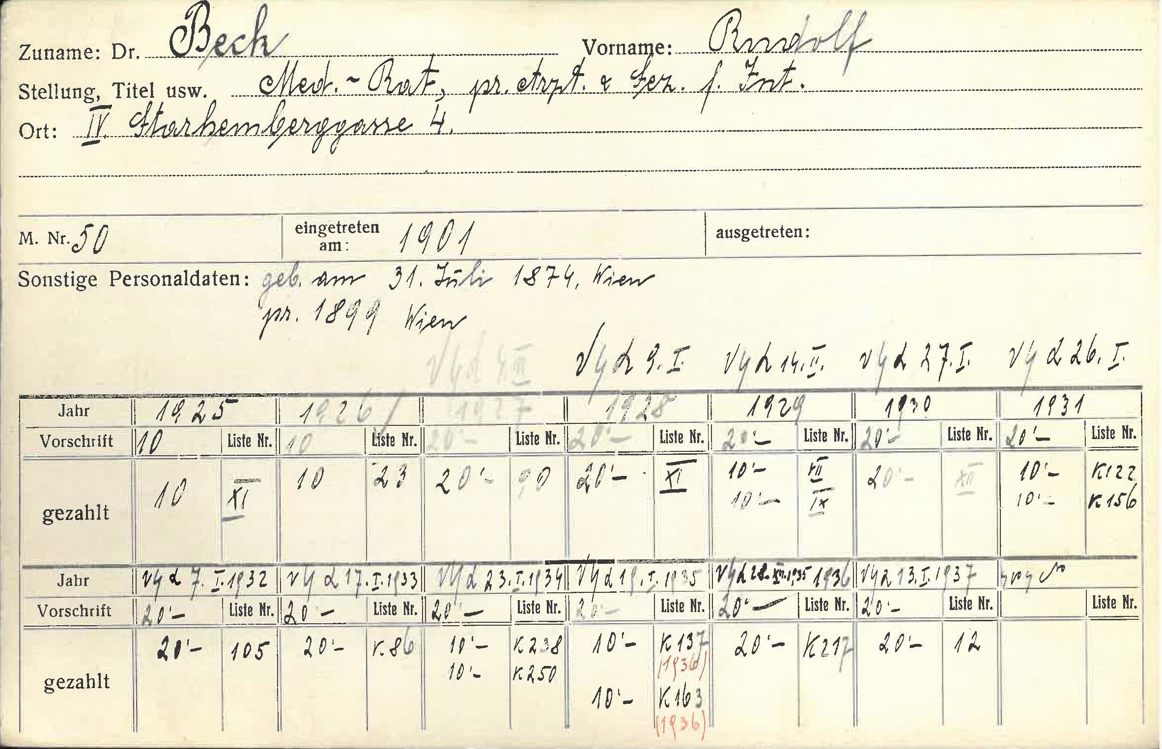 Rudolf Beck hielt laut Isidor Fischer keinen Vortrag in der Gesellschaft der Ärzte in Wien.
