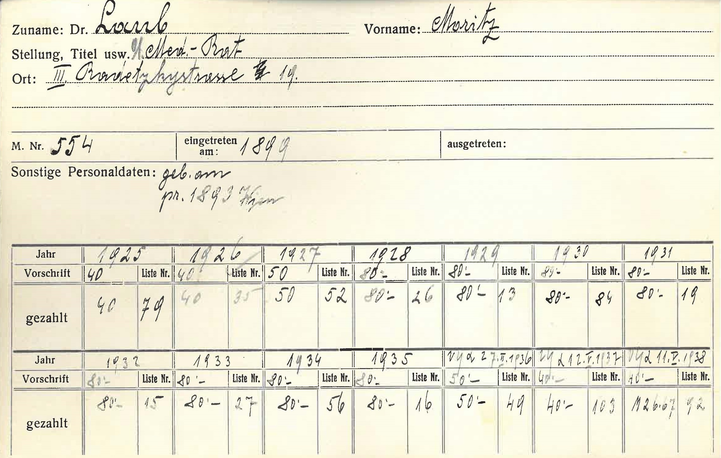 Moritz Laub und seiner Frau stand die Deportation in das Ghetto Theresienstadt bevor, als ihnen im letzten Moment die Flucht nach England gelang. Dort verstarb Laub 1944. Seine Frau emigrierte nach New York. Eine Rückkehr nach Österreich scheiterte 1949. Sie verstarb am 13. Jänner 1952 in Columbia.