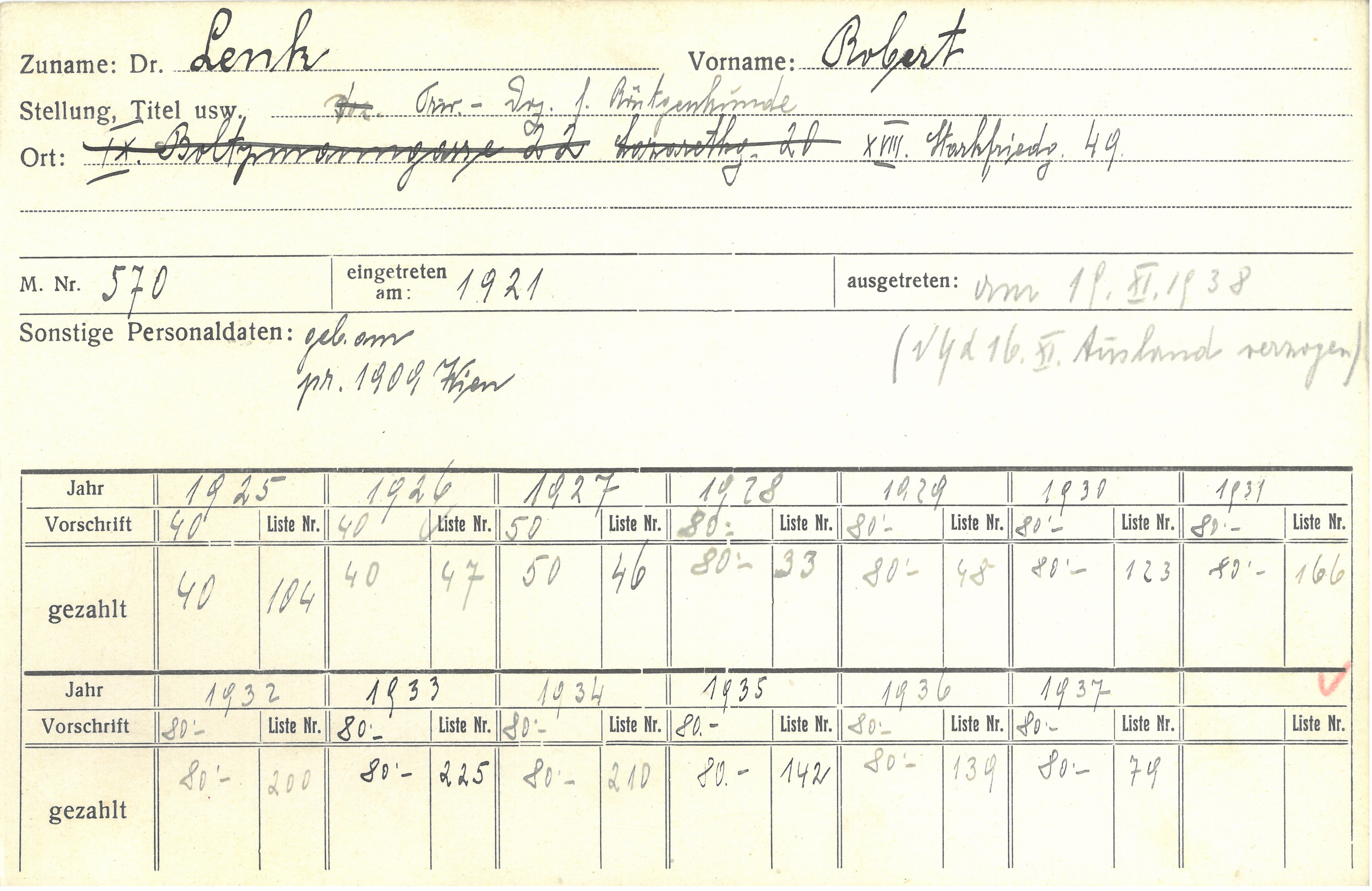 Im April 1938 wurde Lenk von der Universität vertrieben, seine Venia Legendi