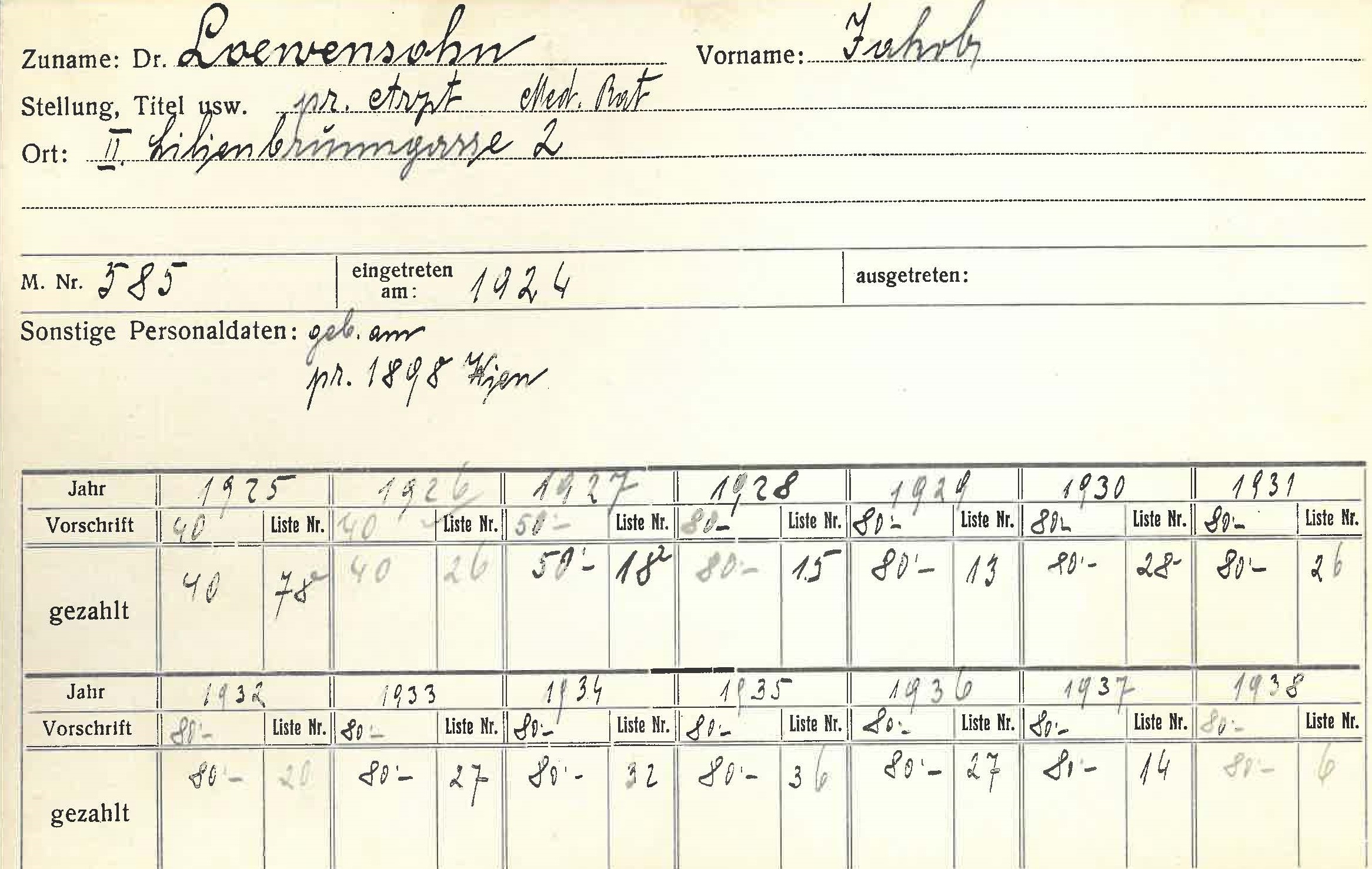 Adresse (von Karteikarte) Lilienbrunngasse 2, 1020 Wien