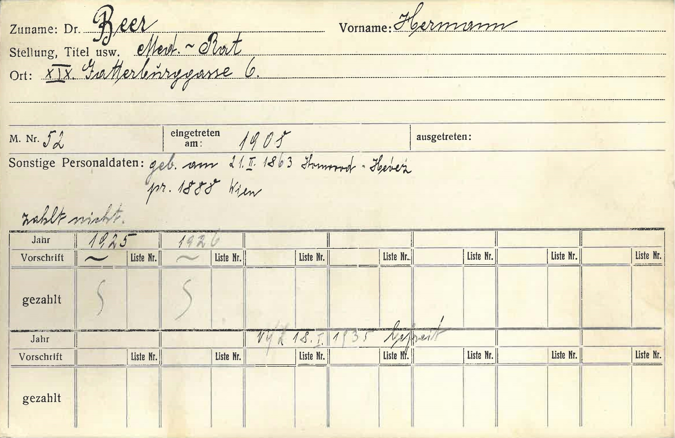 Hermann Beer wurde im Holocaust ermordet; er wurde am 28.7.1942 nach Theresienstadt deportiert. Laut Isidor Fischer hielt er keine Vorträge in der Gesellschaft der Ärzte in Wien.