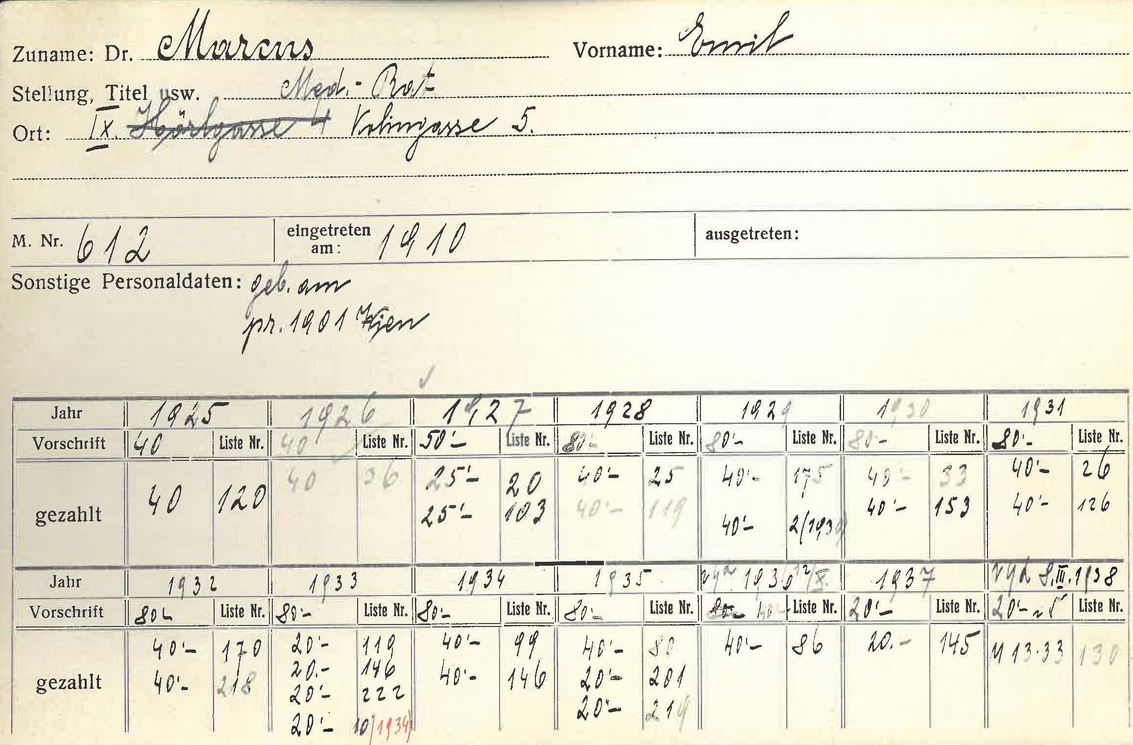 Adresse (von Karteikarte) Kolingasse 5, 1090 Wien
