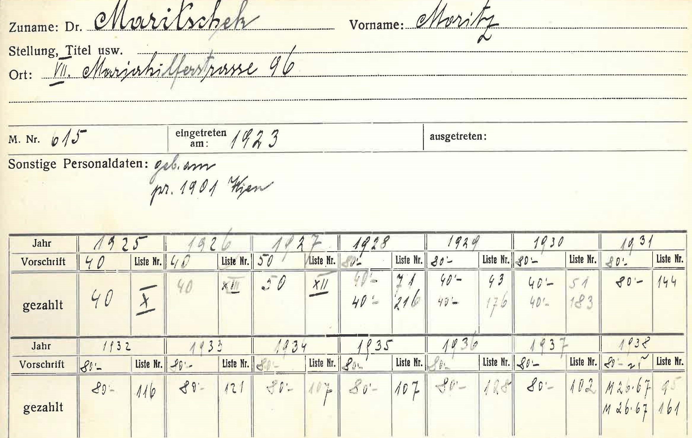 Adresse (von Karteikarte) Mariahilfer Straße 96, 1070 Wien